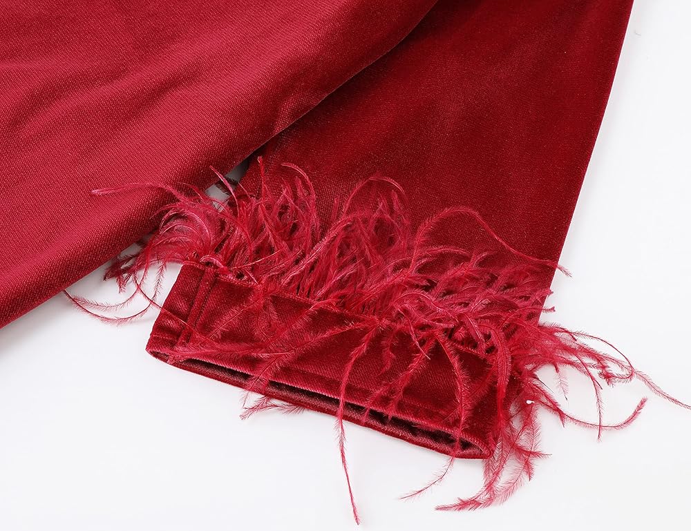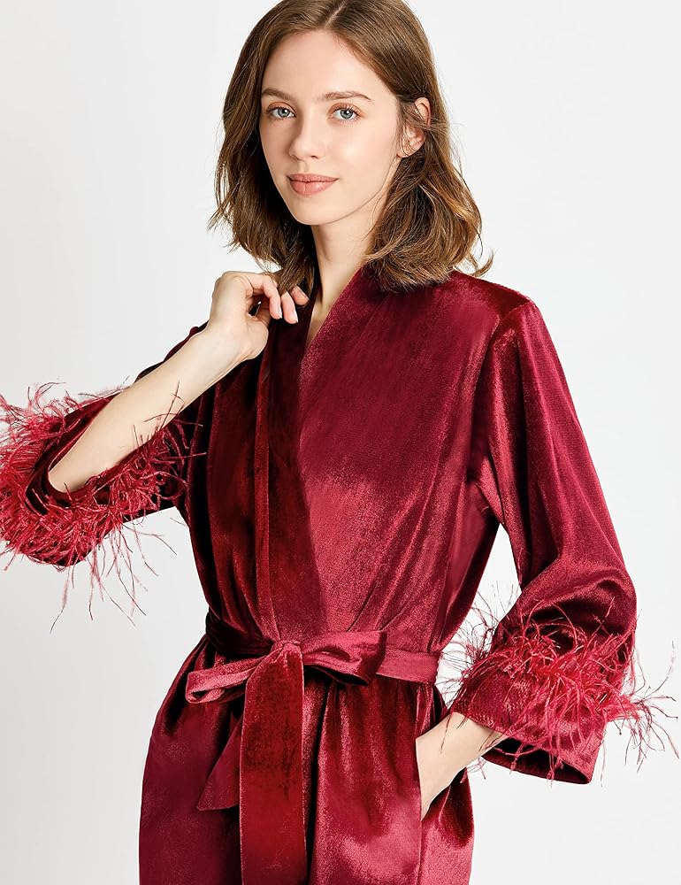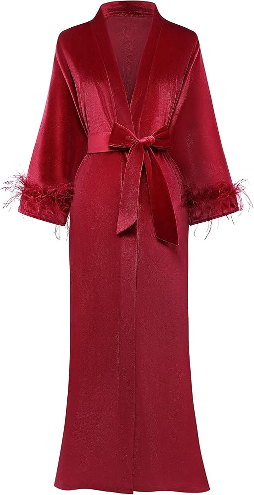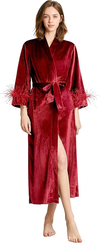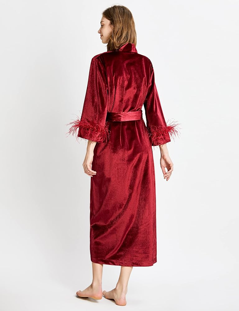 Design: Made of high-quality velour, this luxurious velvet nightgown is perfect for any scenario, whether you're laying back at home or just stepping out of the shower, and will add the ultimate in comfort to your everyday life. Unique ostrich feather trim accents the entire velvet robe, making it outstanding to you.