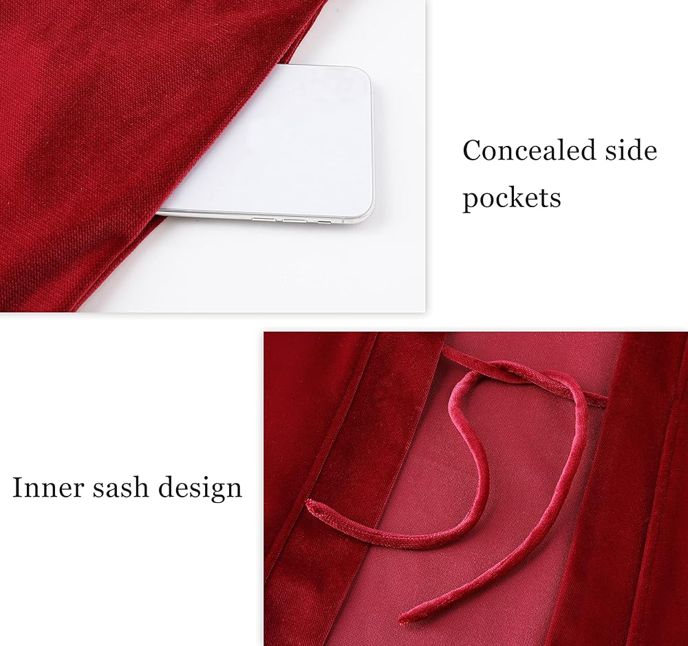 Occasion: The long style ladies velvet robe could be worn as bath robe, sleepwear, nightgown, swimsuit, cover up, spa robe for wedding, bridal shower, valentine, Honeymoon, bachelorette party, bridesmaid, hen party, family party, cosplay, costume, etc.