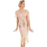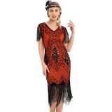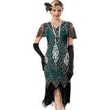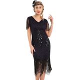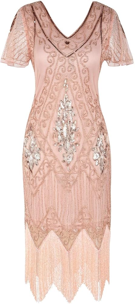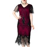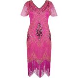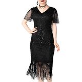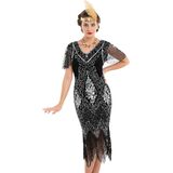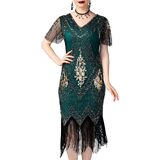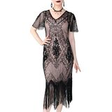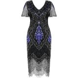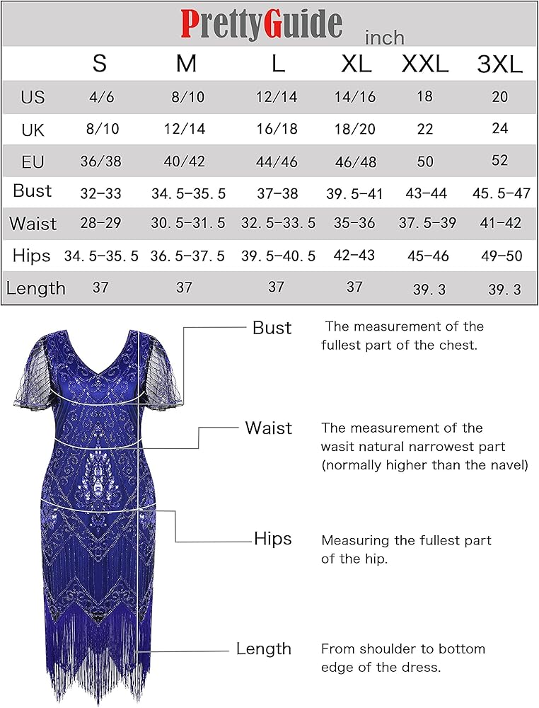 V neck style, short sleeve great gatsby dress; Size S = US 4-6, M = US 8-10, L = US 12-14, XL = US 14-16, XXL = US 18, 3XL = US 20 (please check the detail Size Chart in the last image)