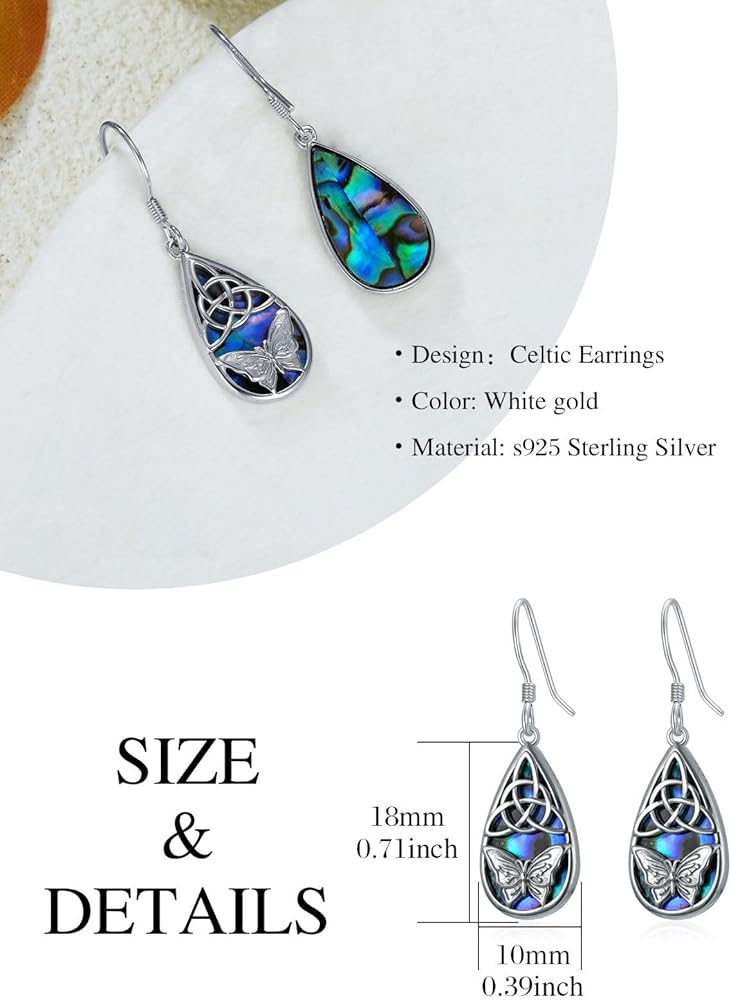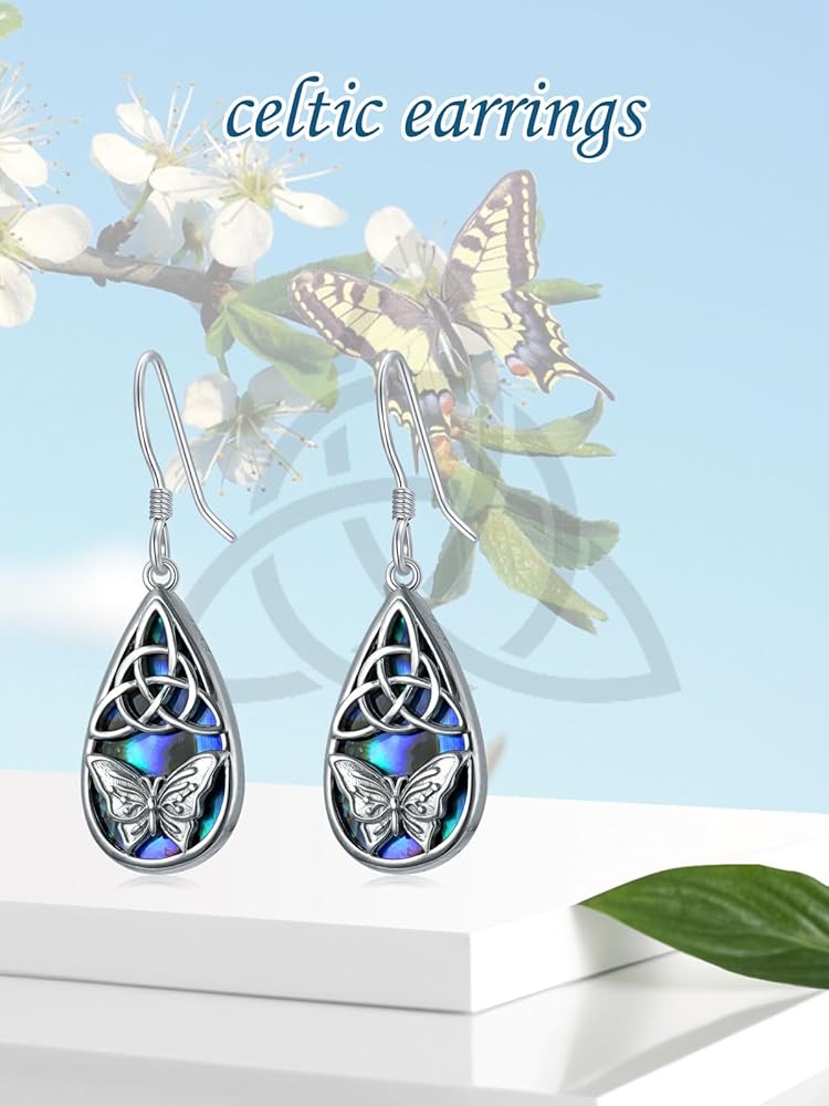 🦋【Celtic Butterfly Earrings Inspiration】This irish earrings feature celtic knot and butterfly.The butterfly means transformation, hope and rebirth.It is a perfect gifts idea for women or girls who love butterfly and abalone shell jewelry.