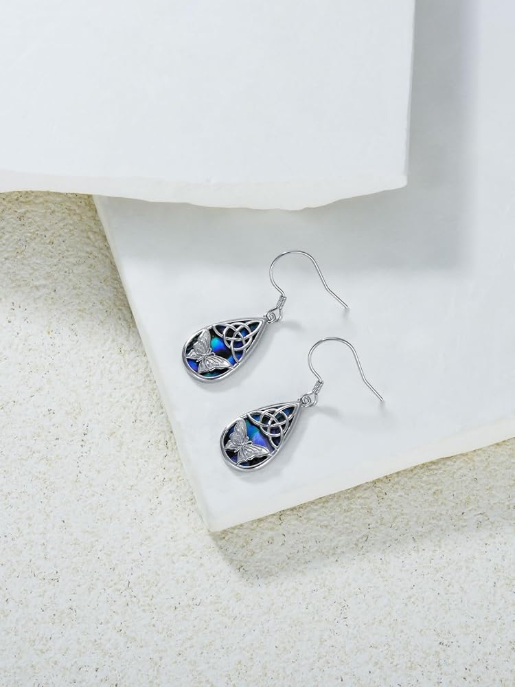 🦋【Silver Dangle Earrings for Women】Made of S925 sterling silver,oxidized silver butterfly dangle earrings with colorful abalone shell.The celtic knot make it unique.Hypoallergenic,Nickel-free, Lead-free and Cadmium-free,safer and healthier.