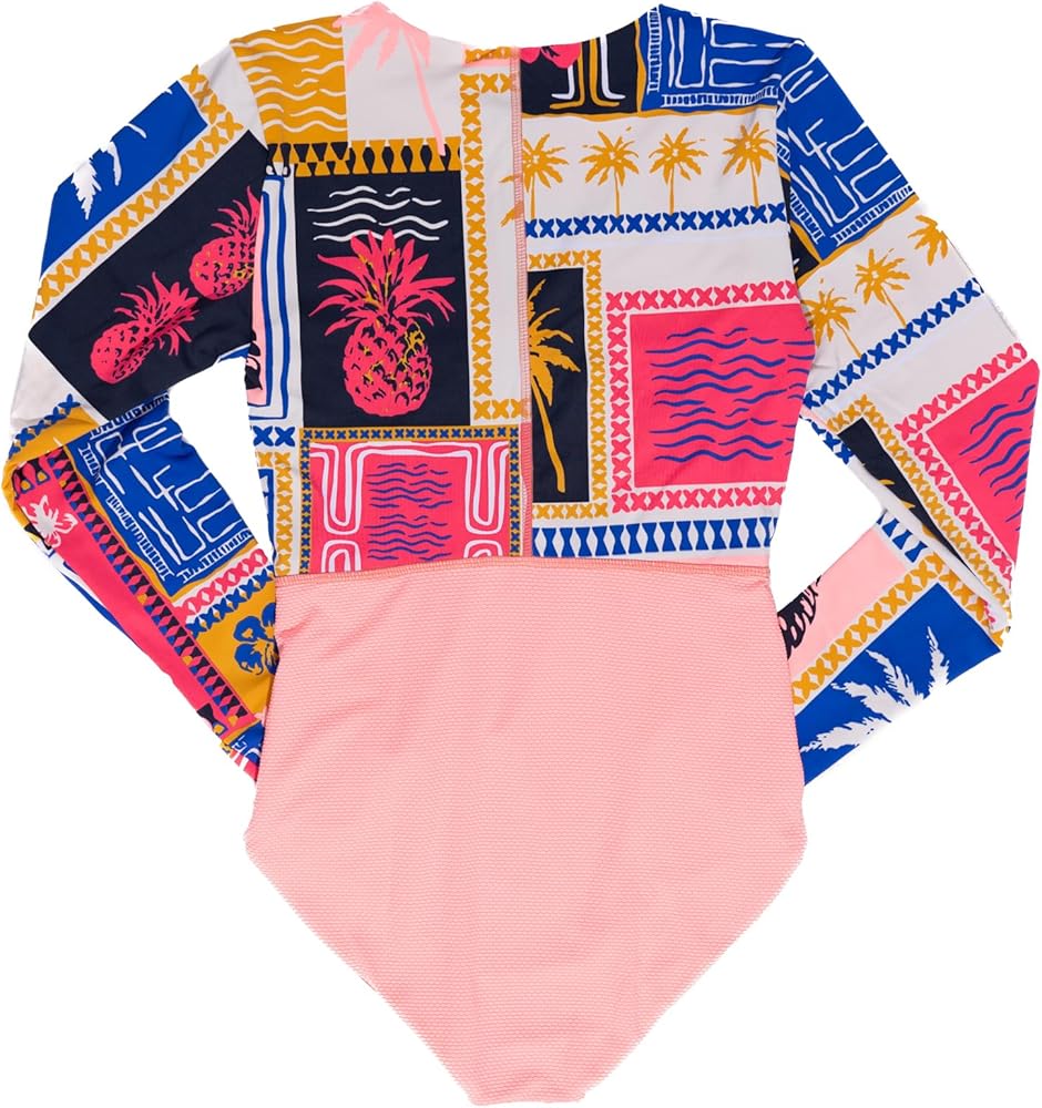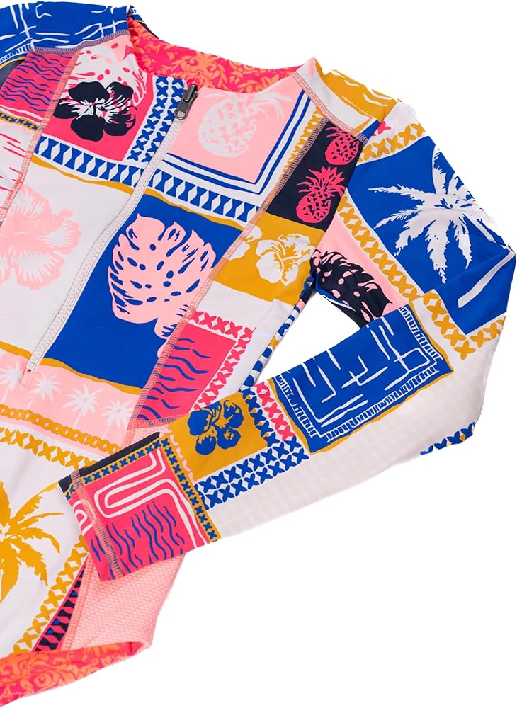 If colorful everything is your vibe, then you might have your eye on our Miku rashguard one-piece in Paradise Postals print! And why not - this adorable swimsuit has UPF 50+ sun protection, large sleeve, unique stitch details, and a reversible print! Now get out there and go have fun in the waves, and don't forget to check out our other pieces in Paradise Postals print for the whole family!