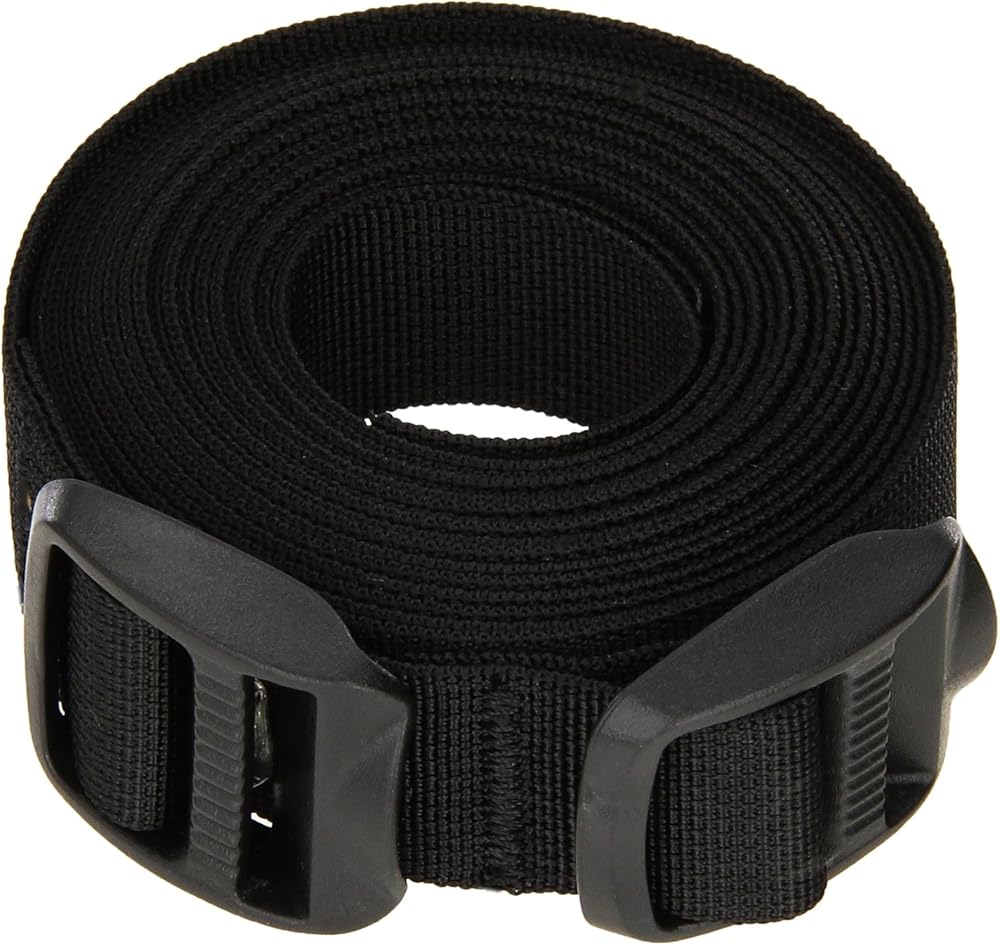 This universal accessory straps is made from either 0.75 in. or a 1 in. wide flat nylon webbing with ladderlock buckles. There are 2 straps per pack in a polybag with header.