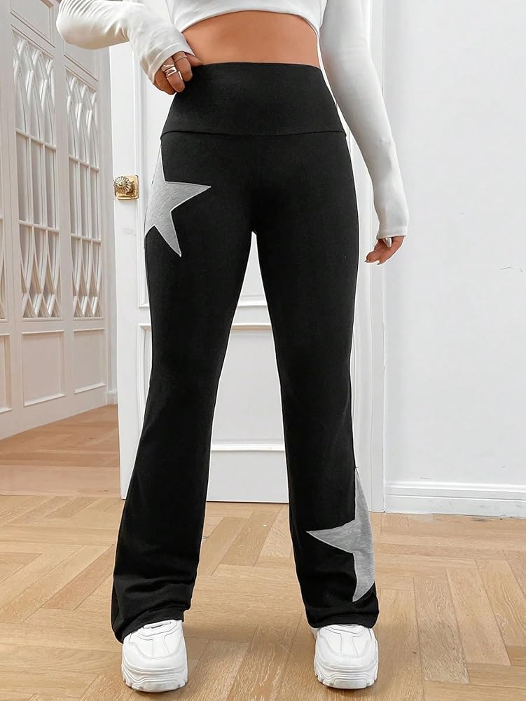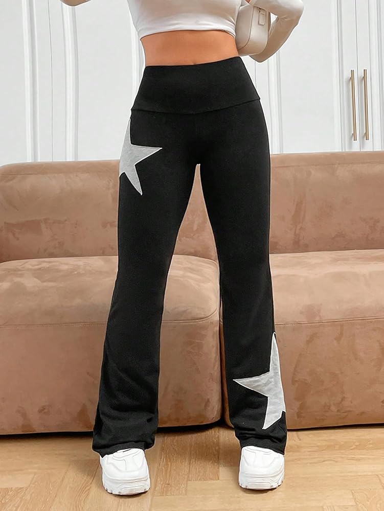 COZYEASE Women's Star Graphic Elastic Waist Flare Leg Sweatpants Geometric Print Long Pants