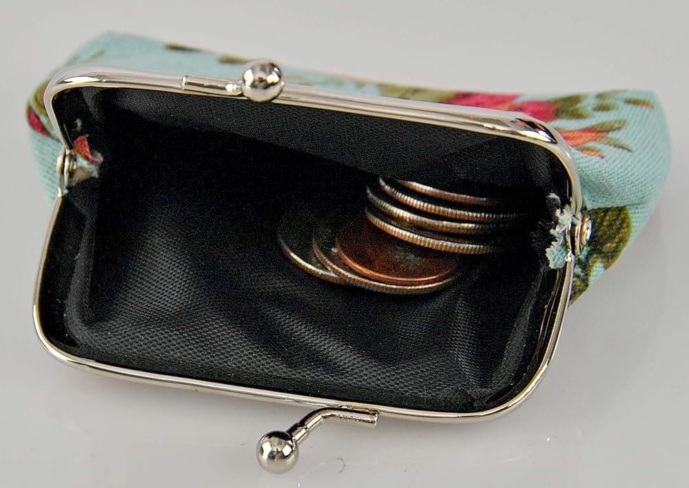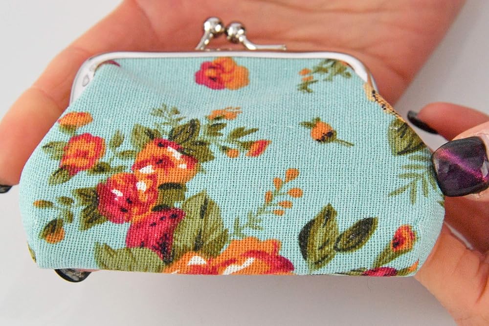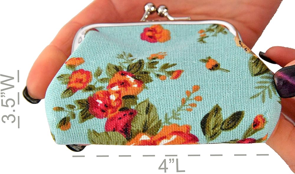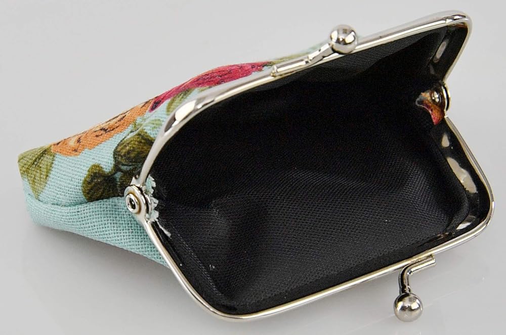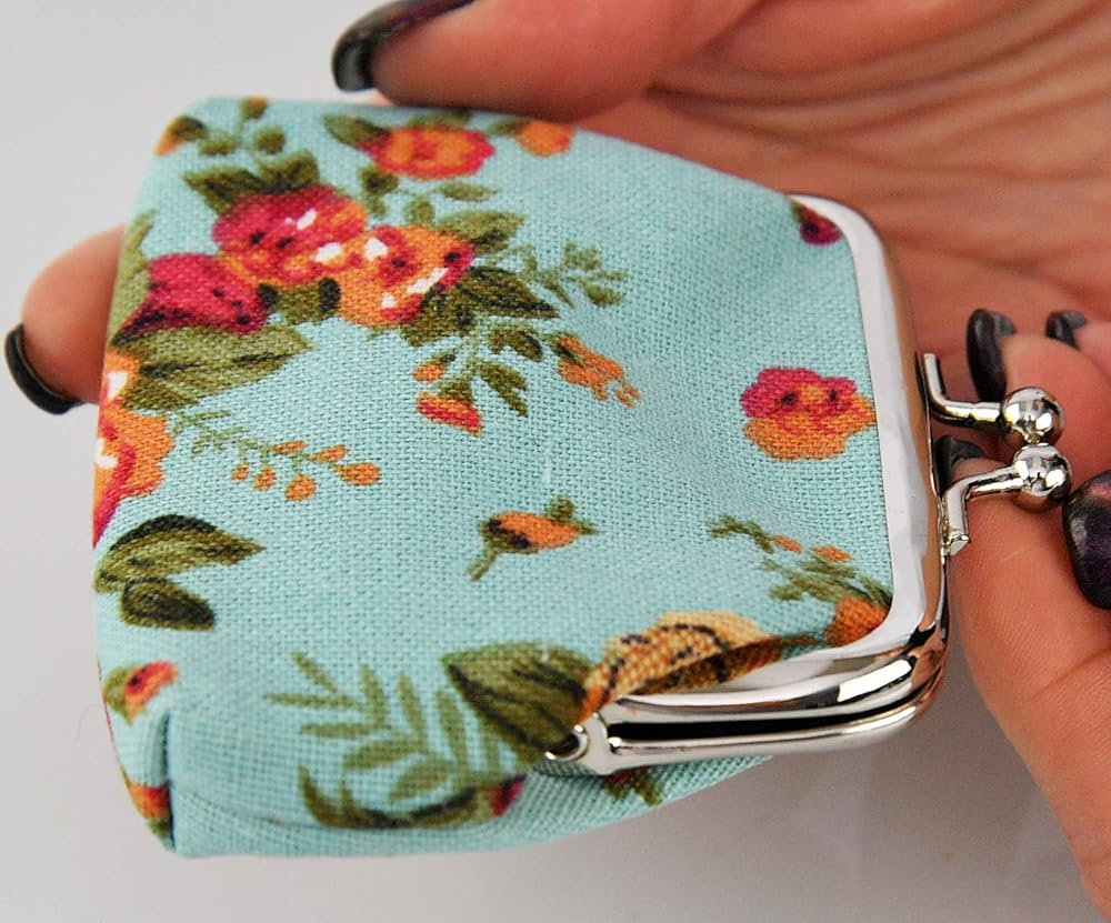 CUTE, STYLISH DESIGN: Floral is always in style, which is what makes this mini coin purse a timeless staple in your wardrobe. Its sleek and chic design will make you stand out in a crowd. It is truly the height of fashion. Plus, its fun floral pattern will complement any outfit, adding a feminine touch. Made of high quality canvas with black polyester lining with clasp kiss-lock closure, easy to clean and durable.