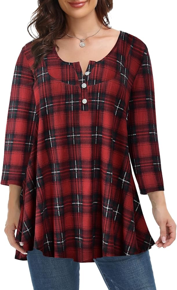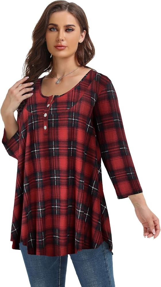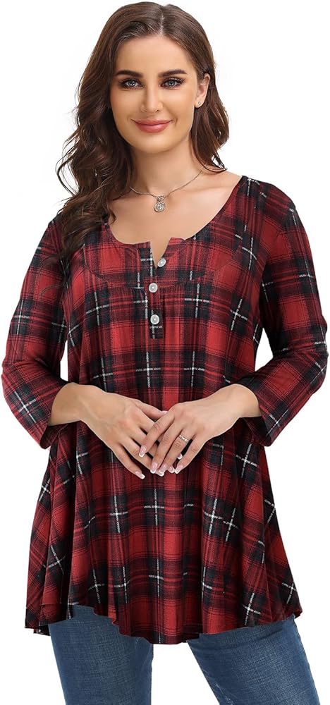 【Plus Size Tops for Women】Casual style top, 3/4 sleeve, maternity tops, specially designed for plus size women. The looseness and ruffle details on the middle can keep womens tops flowy perfecterly. With its slimming cut & trendy look, this flowy tops flatters your sexy figure.