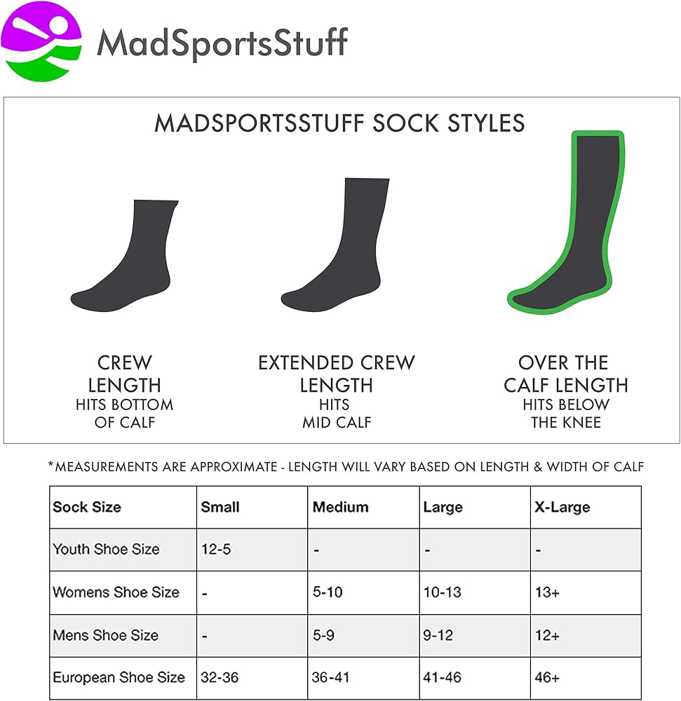 ACCURATE SIZING: MadSportsStuff Sock Size: Small - Youth Shoe Size 12-5, Medium - Womens Shoe Size 5-10 Mens Shoe Size 5-9, Large - Womens Shoe Size 10-13 Mens Shoe Size 9-12, X-Large Womens Shoe Size 13+ Mens Shoe Size 12+