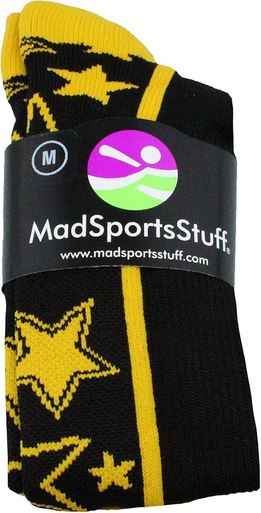 MadSportsStuff Crazy Stars Over the Calf Socks. High performance athletic socks for all team sports and elite athletes. Great for teams! Ideal for softball,baseball, lacrosse, basketball, field hockey, volleyball, wrestling, soccer, football, cheer, kickball and more!