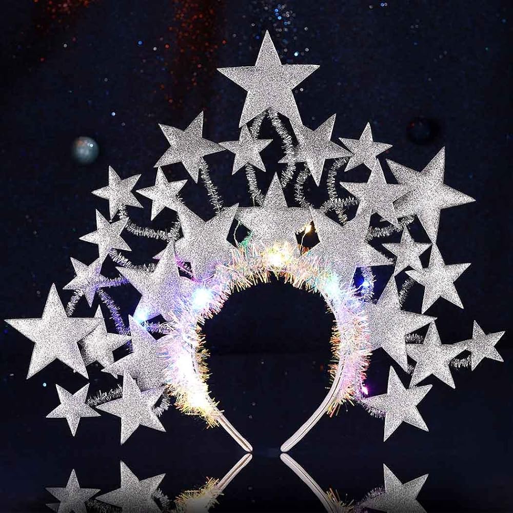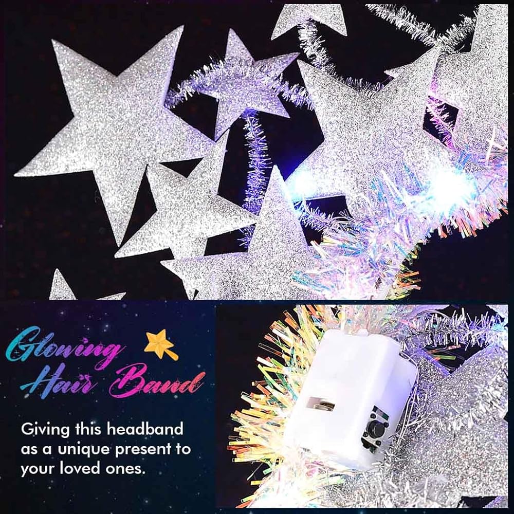 LED Stars headband is made of different sizes glitter stars ,Simple and elegant , guaranteed praise from everyone who sees it.