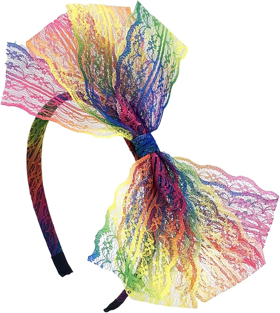 Liatunou Women Lace Bow Headband Costume Accessories for 80S Theme Party,Neon Lace Bow headpiece