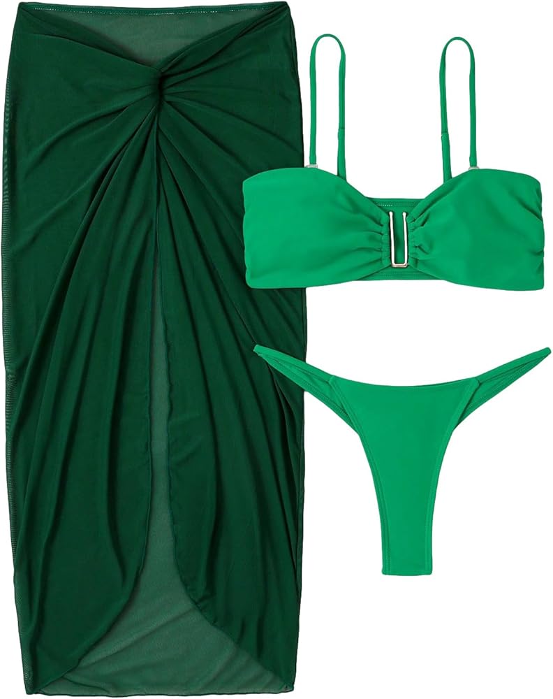 - Design: Adjustable spaghetti strap, v wired bikini top, wireless bra, removable padding, thongs bottoms, twist front cover up skirt, 3 piece set