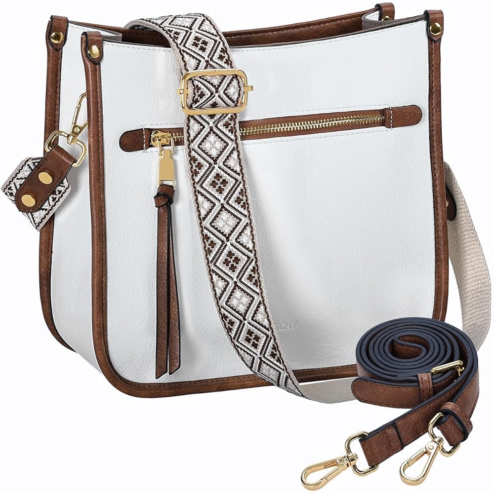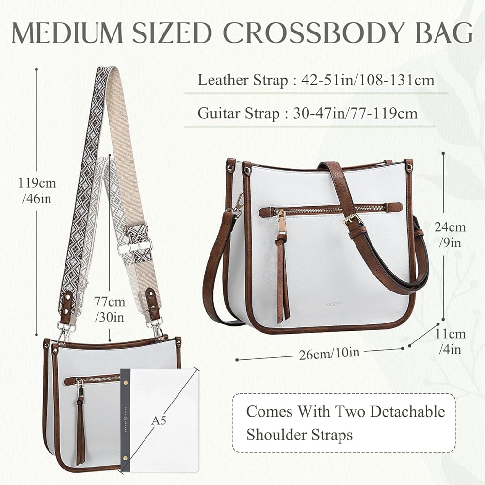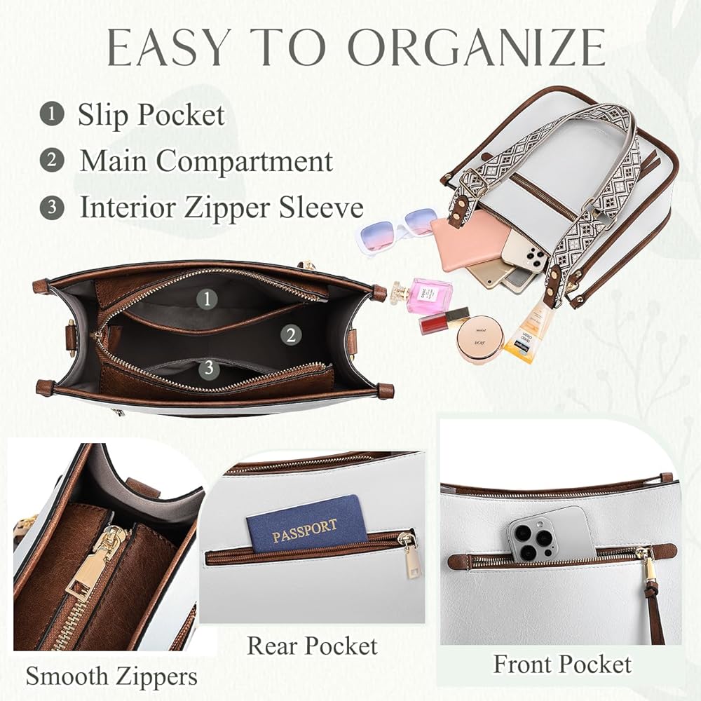 ⭐Practical & Comfortable Design: Tailored for different occasions, this crossbody shoulder bag comes with two adjustable shoulder straps. The guitar strap adds a casual and unique look, while the leather strap provides a more professional appearance. The quality lining brightens the interior, making it easy to find what you need.