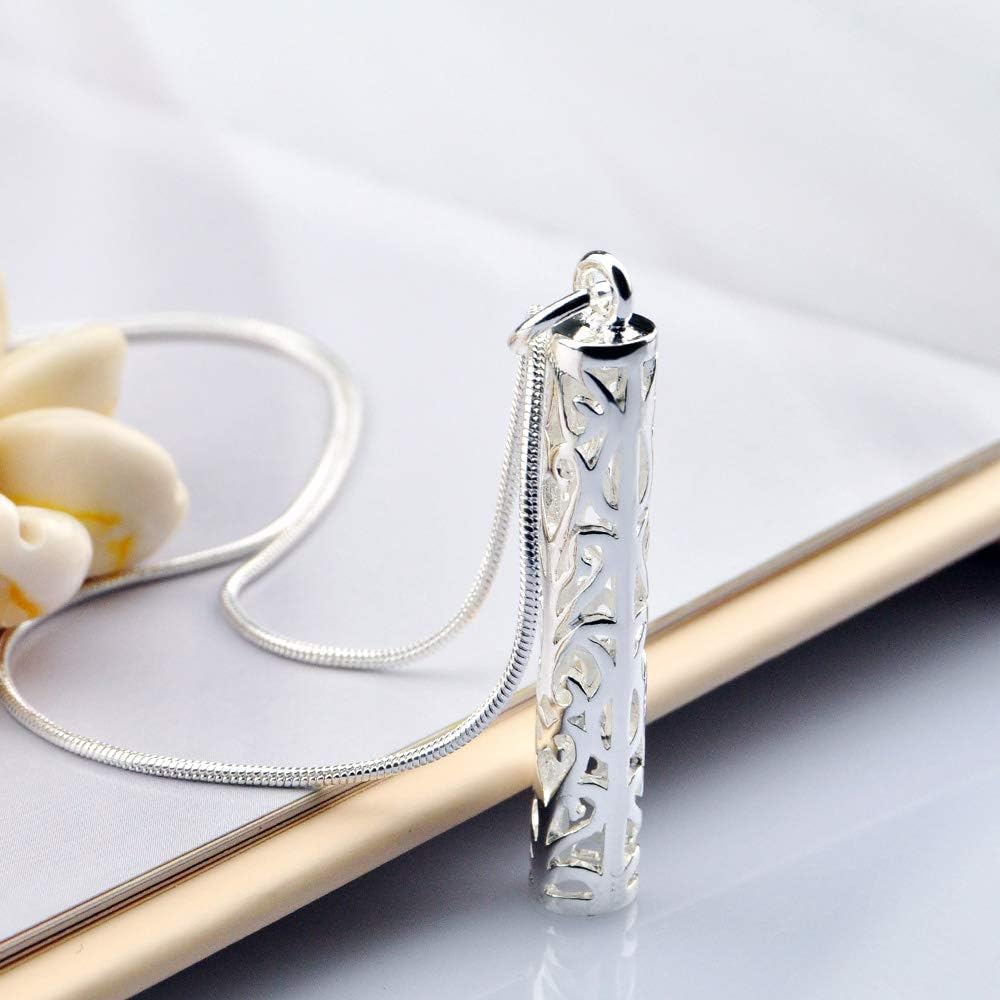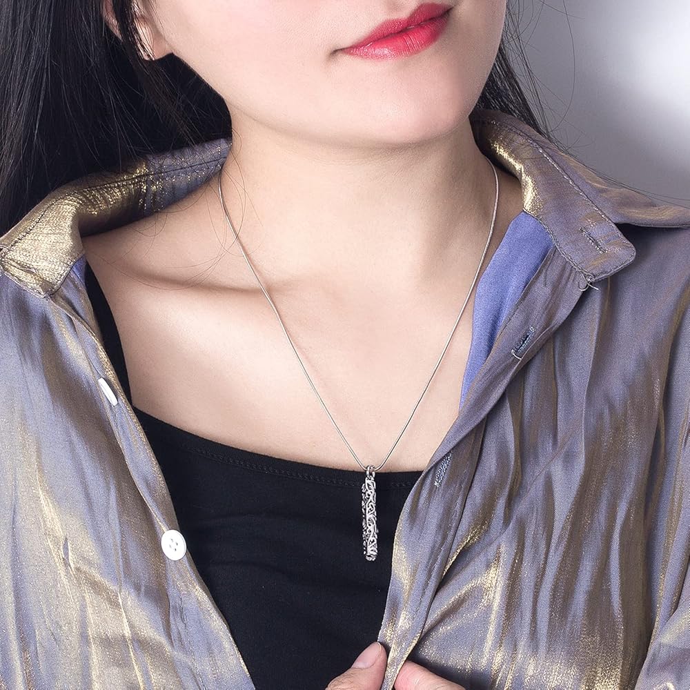 Dankadi Women's 925 Silver Necklace-Bohemian Sterling Silver Patterned Cylindrical Pendant Necklace-100% Original Silver Snake Chain 45-60CM Fine Jewelry