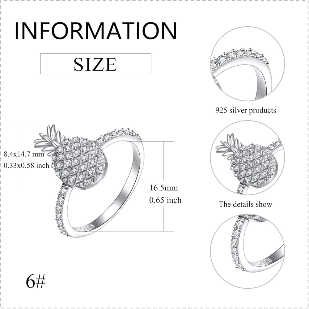 🍍SPECIFICATION: Pineapple Size: 0.33x0.58 inches/8.4x14.7 mm(LxH), US size 7, Weight:2.2g. This pineapple sterling silver ring is Lead-free, Nickel-free, Cadmium-free suitable for long time wearing.