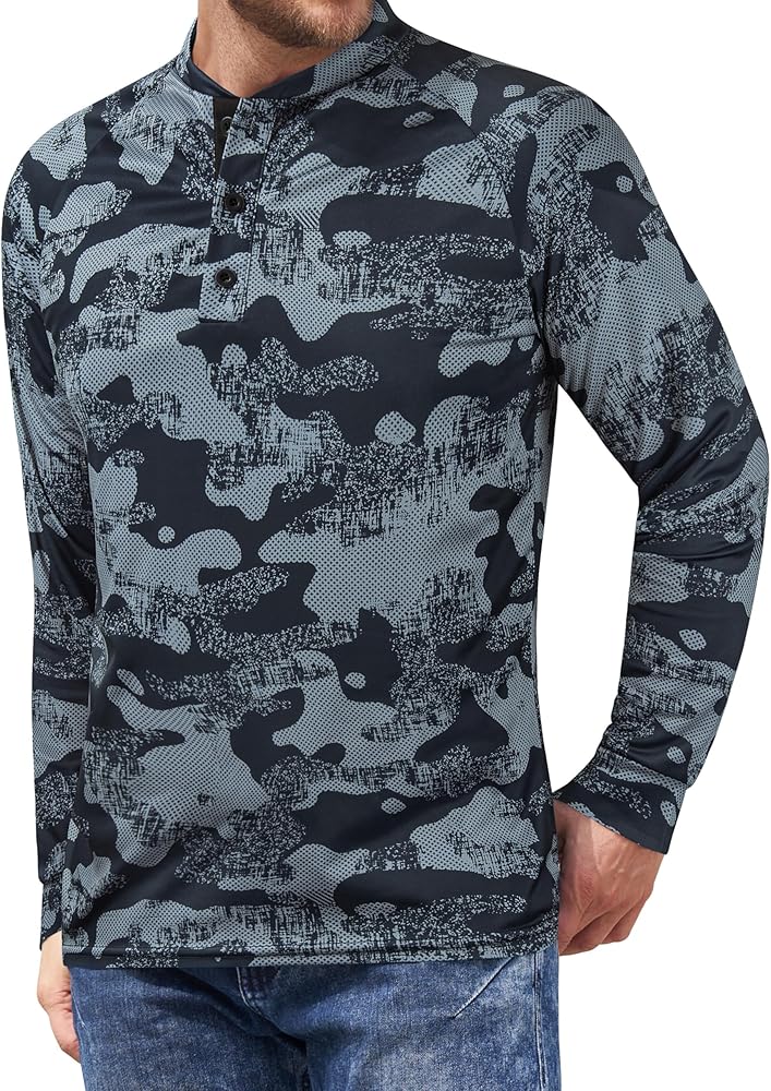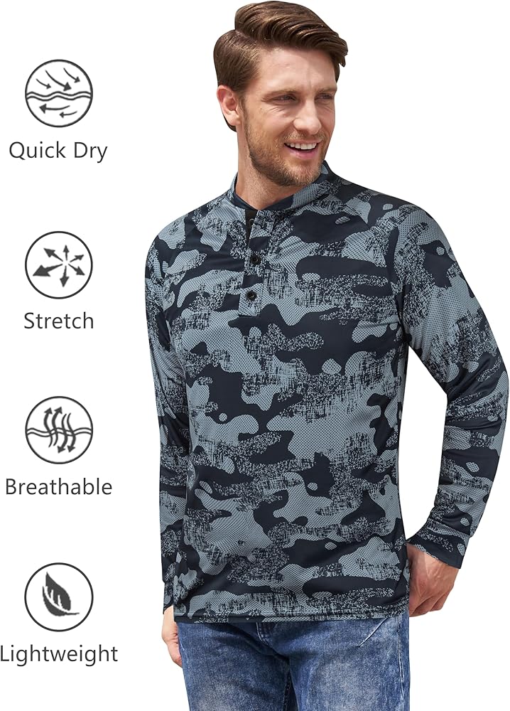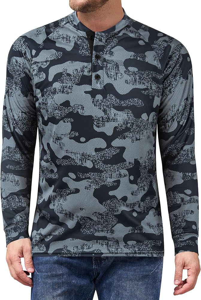 Moisture Wicking and Breathable - With moisture-wicking technology helping draw moisture quickly and breathable fabric to provide better airflow, you'll stay dry and comfortable with our men's camo henley no matter how intense your activities get.