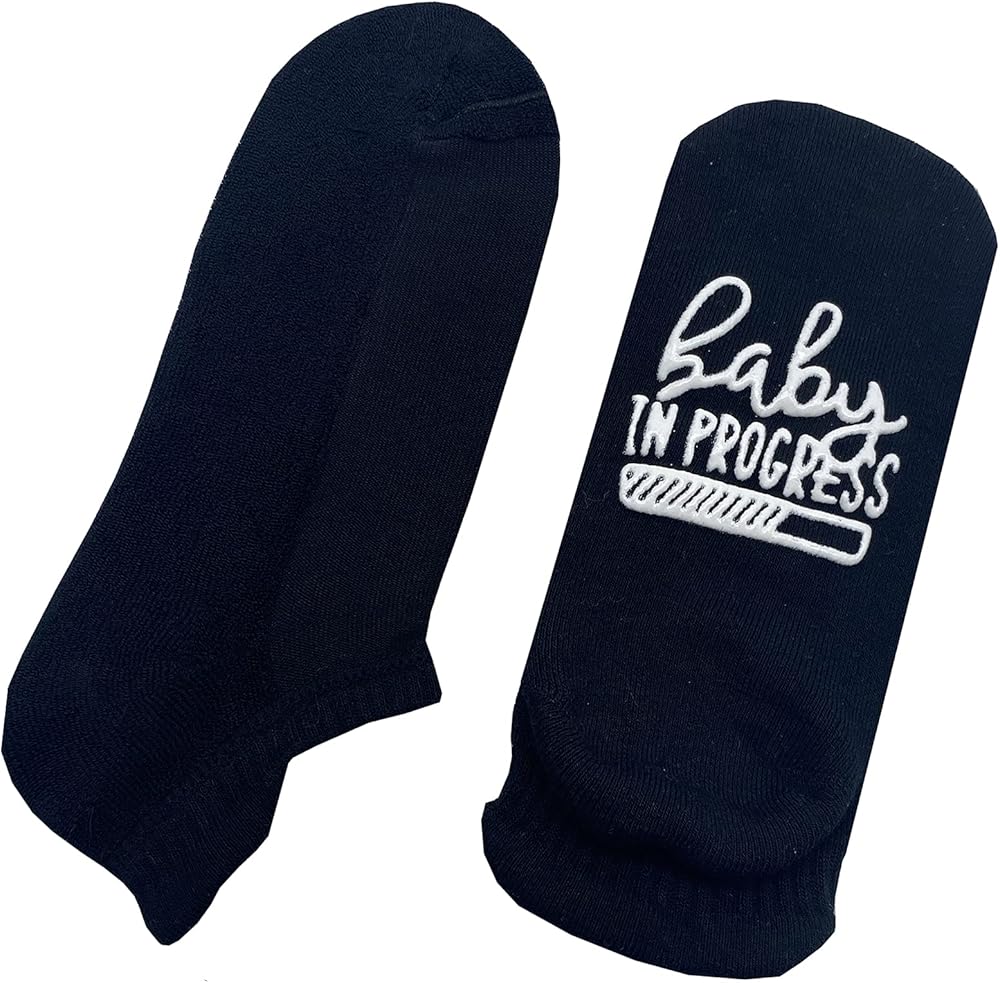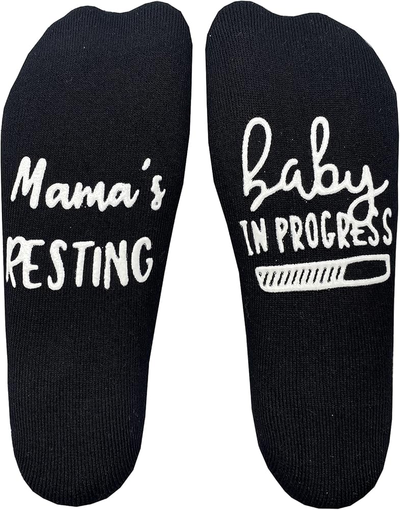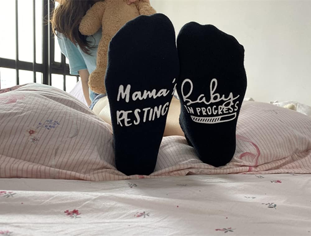 Labor and delivery socks. The inspirational messages on the bottom are not only teasing but also functional. Either antepartum or postpartum women will be able to walk a tiled floor, pace the room, tread on stairs with your awkward pregnant body or your baby in your arms after childbirth. These gripping socks work great and make each step stable and secure.They are thinner on the top of the feet with a cushioned sole. A great alternative to hospital slippers