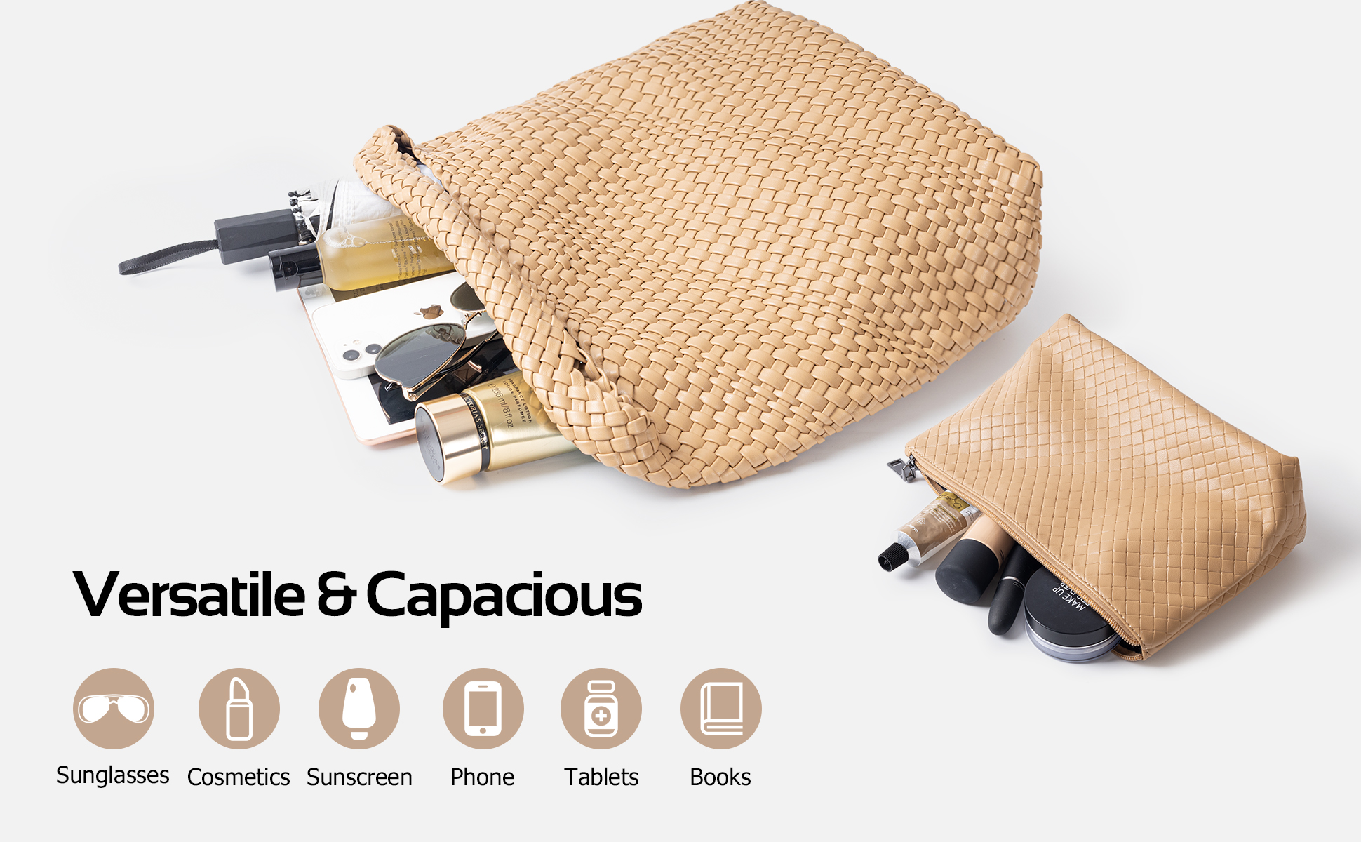 [ Spacious Room ] Unlock the potential of this handbag's capacious interior. Your tablet, books, keys, cosmetics – all find a cozy home within its confines. Not to be outdone, the clutch bag companion offers a safe haven for your coins, cash, and mobile phone. The pocket's expansive view and quick access ensure you won't fumble while searching for your prized possessions.