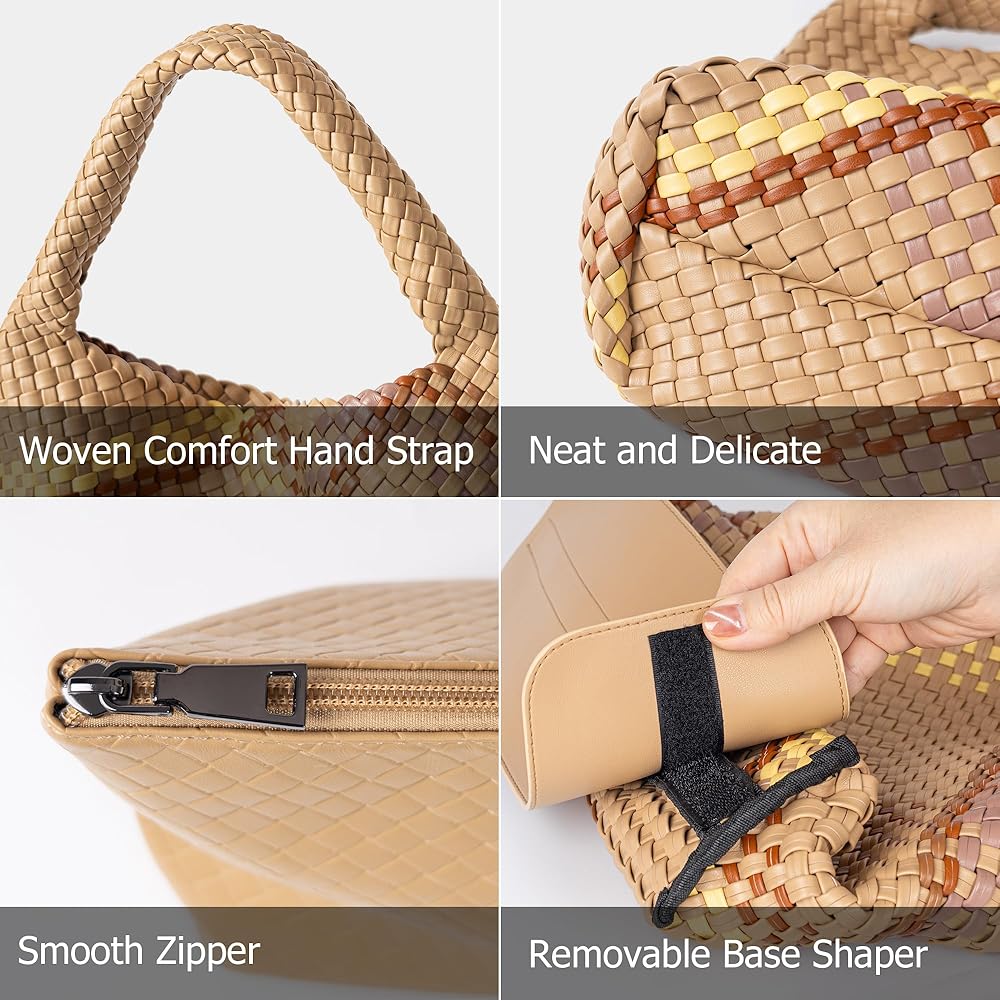 [ Stylish Appearance ] The aesthetic appeal of this handwoven masterpiece is truly captivating. The intricate weaving pattern adds texture and dimension to the bag, while the subtle sheen of the vegan leather exudes an understated elegance. The carefully chosen color palette ensures that our tote complements any outfit, making it the perfect accessory for both formal and casual occasions.