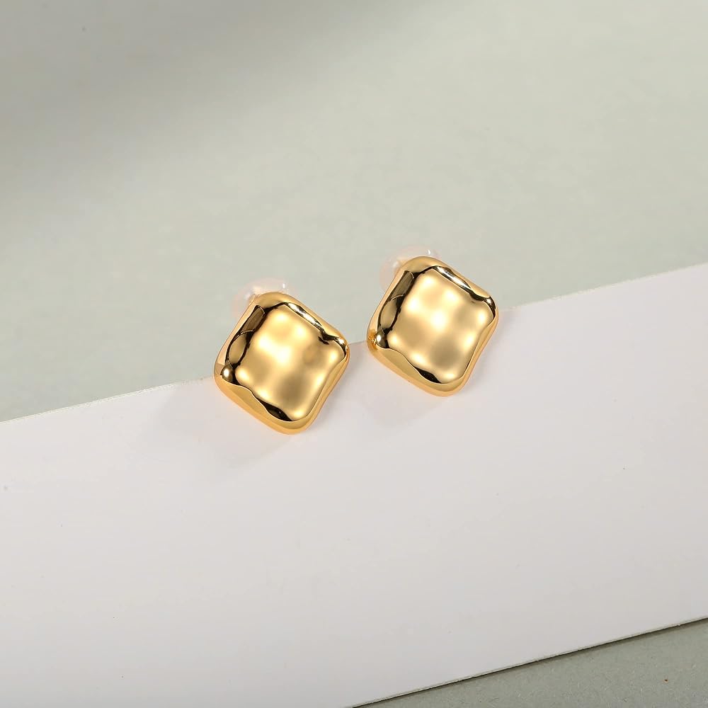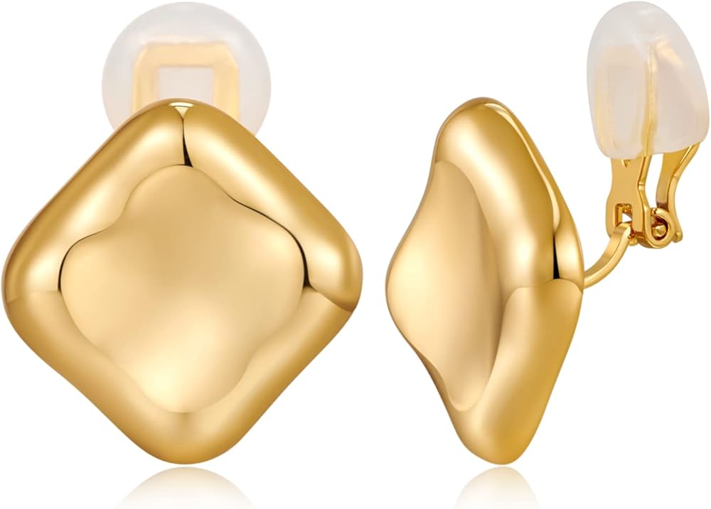 【Square Clip-on Earrings】:ENSKEFEN 14K gold plated irregular square clip earrings have a hypoallergenic setting for those with sensitive skin and are safe and lightweight.