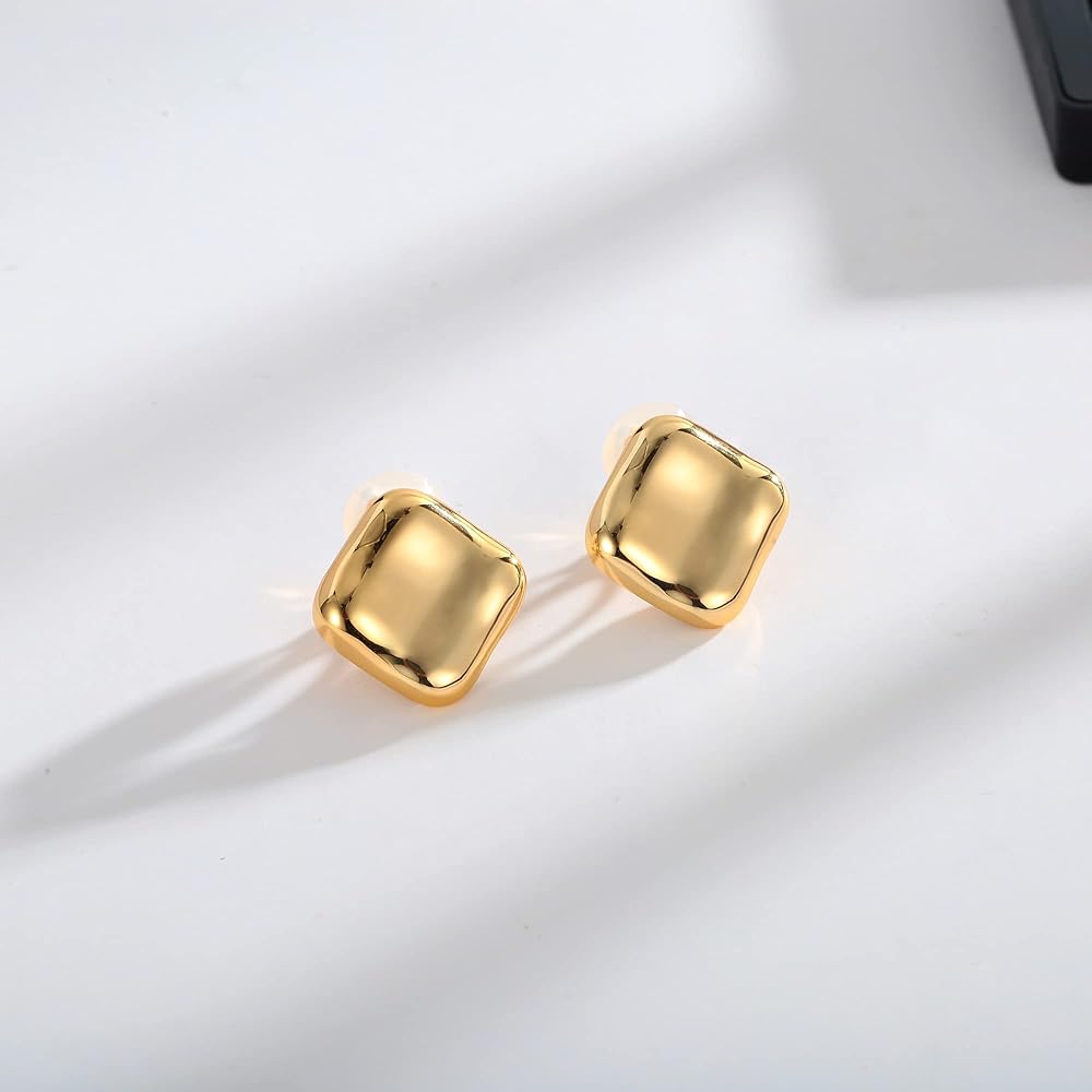 ENSKEFEN Square Clip On Earrings for Women Gold Clip-on Earrings Statement Clip Earrings Non-Piercing Geometric Earrings