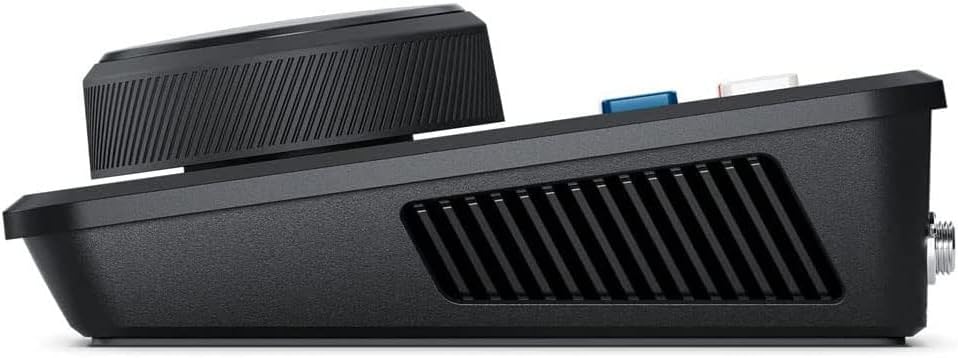 HyperDeck Shuttle HD is perfectly designed for the desktop. This means the front panel can be operated with a single hand. The gentle angle allows your hand to rest on the search dial, and the control buttons are positioned under your fingertips. The design is the same depth and angle as ATEM Mini Extreme, so they match perfectly when used together. Scrolling media is fast as the machined metal search dial has natural inertia, and the soft rubber surface feels nice to the touch. That's perfect when you're searching through lots of media. Plus, the buttons are the same design as traditional broadcast decks. The rear panel includes all video, power, network, and control connections.