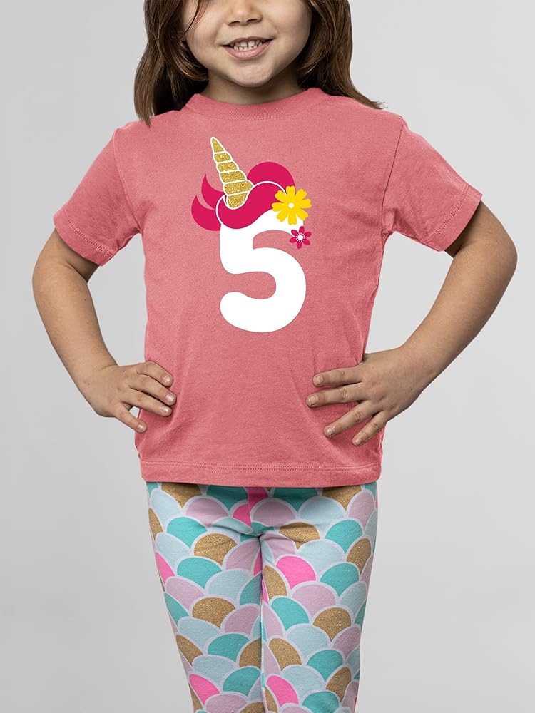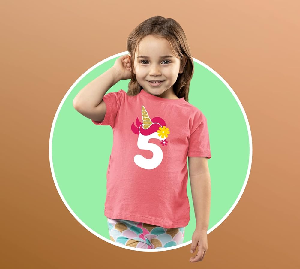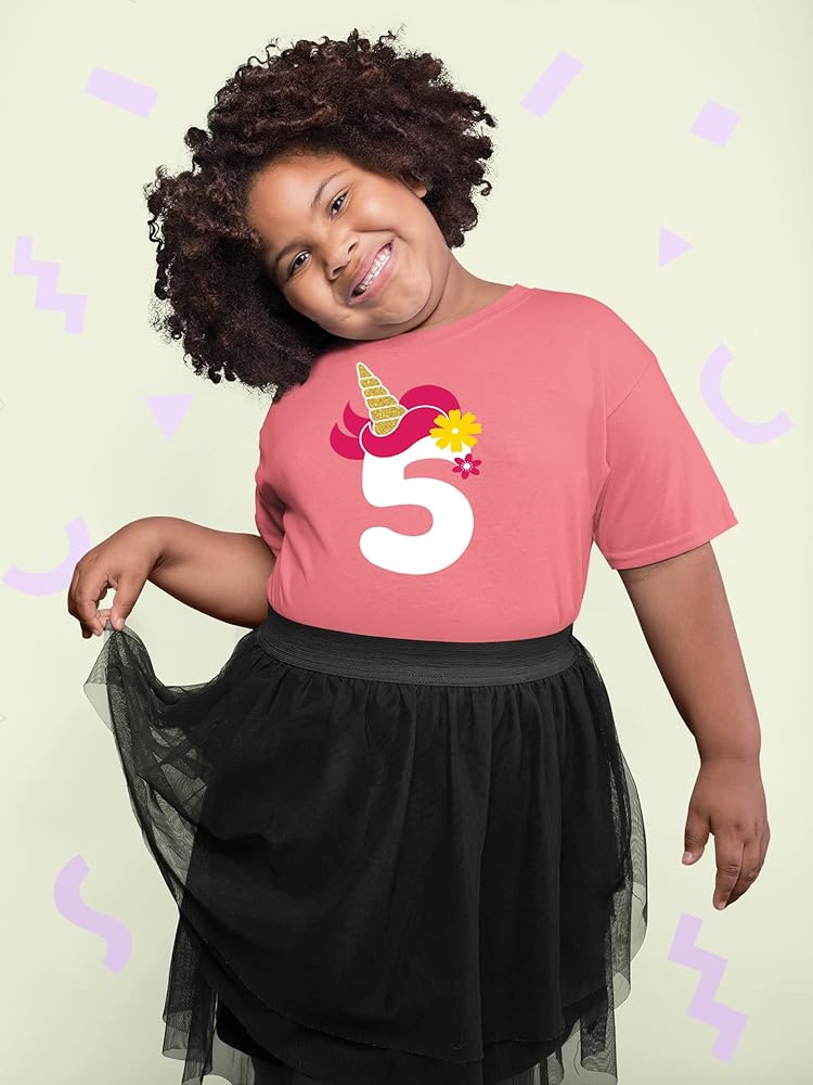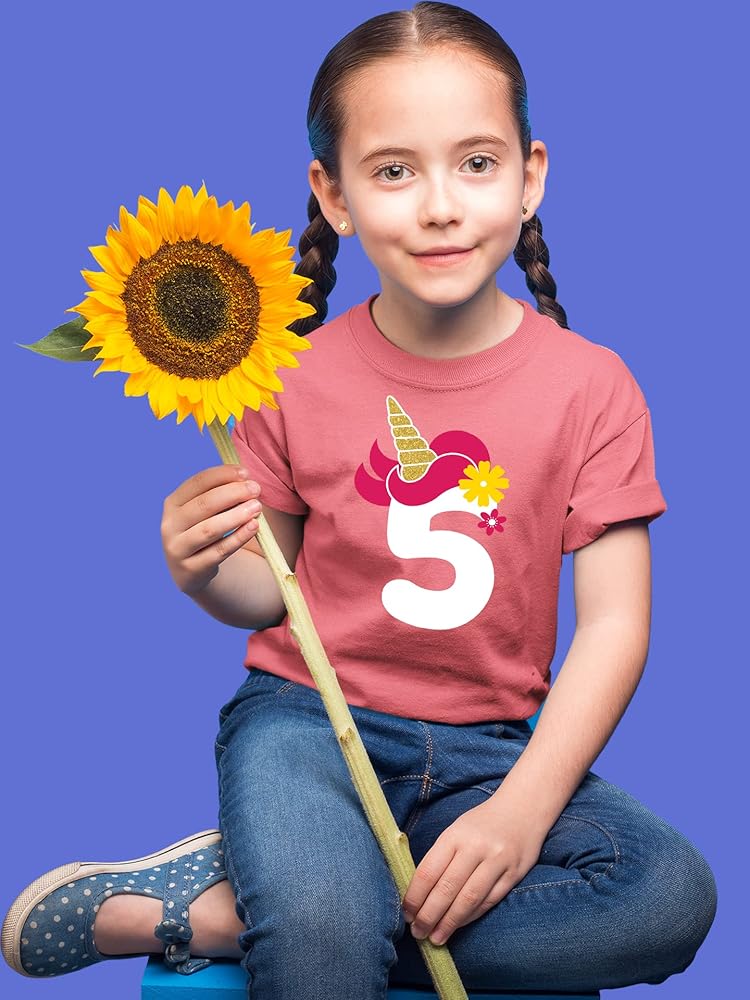 This girl unicorn 5th birthday shirt is designed for age appropriate fit, so no need to buy big