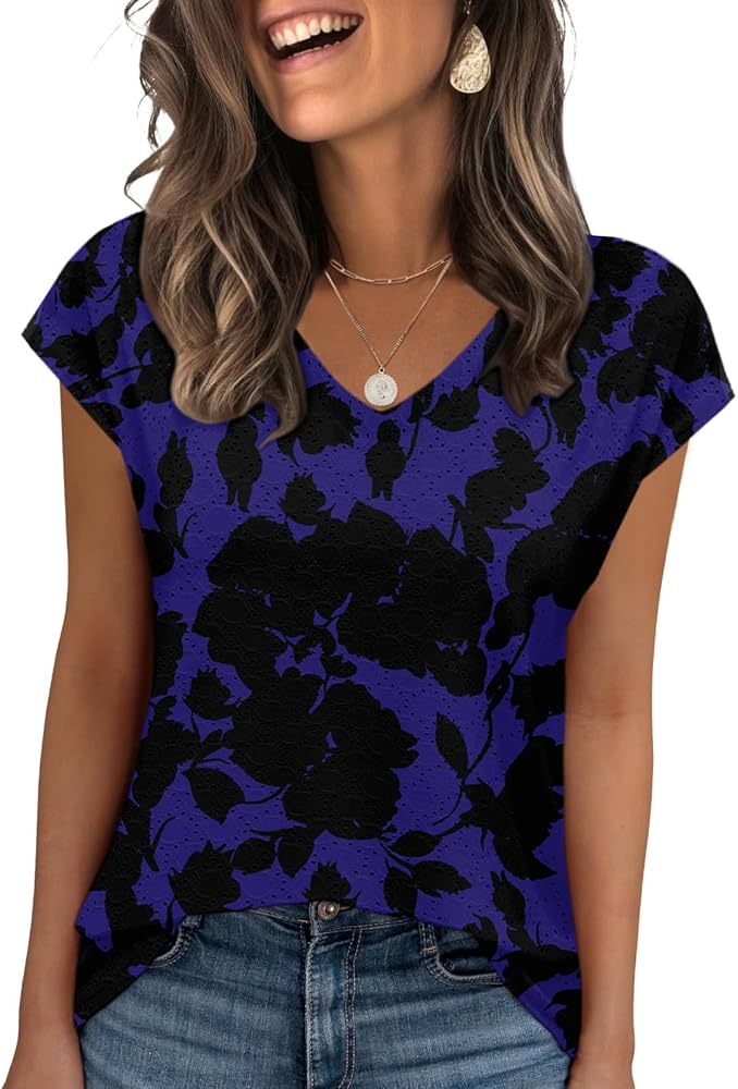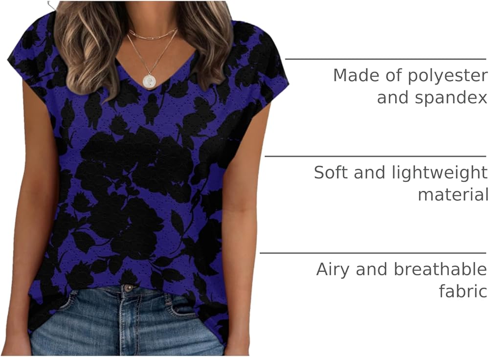 Tops Features:This women summer shirts features Classic v neck design,short sleeve blouses,eyelet hollow-out tops,flowy tank tops,loose fit shirts,long to hip length, casual style,it is a must-have summer fashion shirt for 2024.