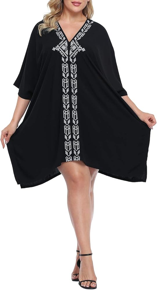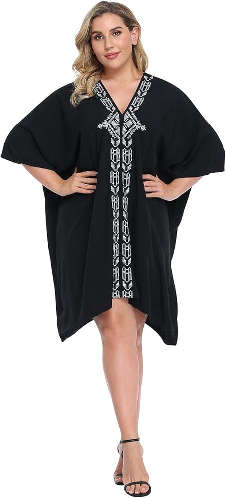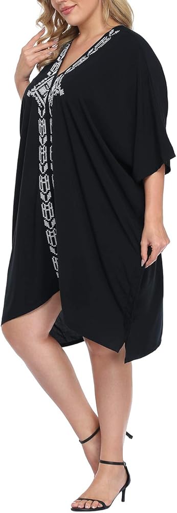 Turns heads at the beach or by the pool wearing our 3/4 sleeved short caftan tunic; the kaftan dress's elegant, flowy draping will have you feeling like a sexy goddess in your swimsuit