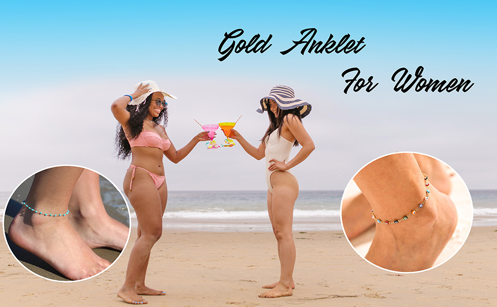 Anklet for Women Gold Chain 14K Gold Plated Dainty Boho Beach Summer Simple Foot Jewelry Ankle Bracelet for Girls Gold Ankle Bracelets for Women 14K Gold Plated Anklet for Women Healing stone crystal Evil Eye Anklet Boho Beach Foot Chain Adjustable Dainty Foot Jewelry