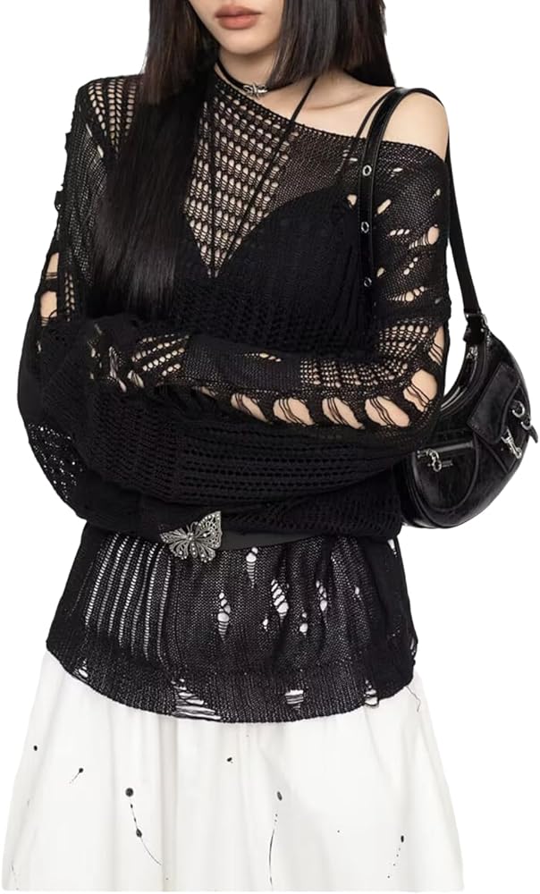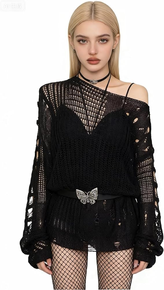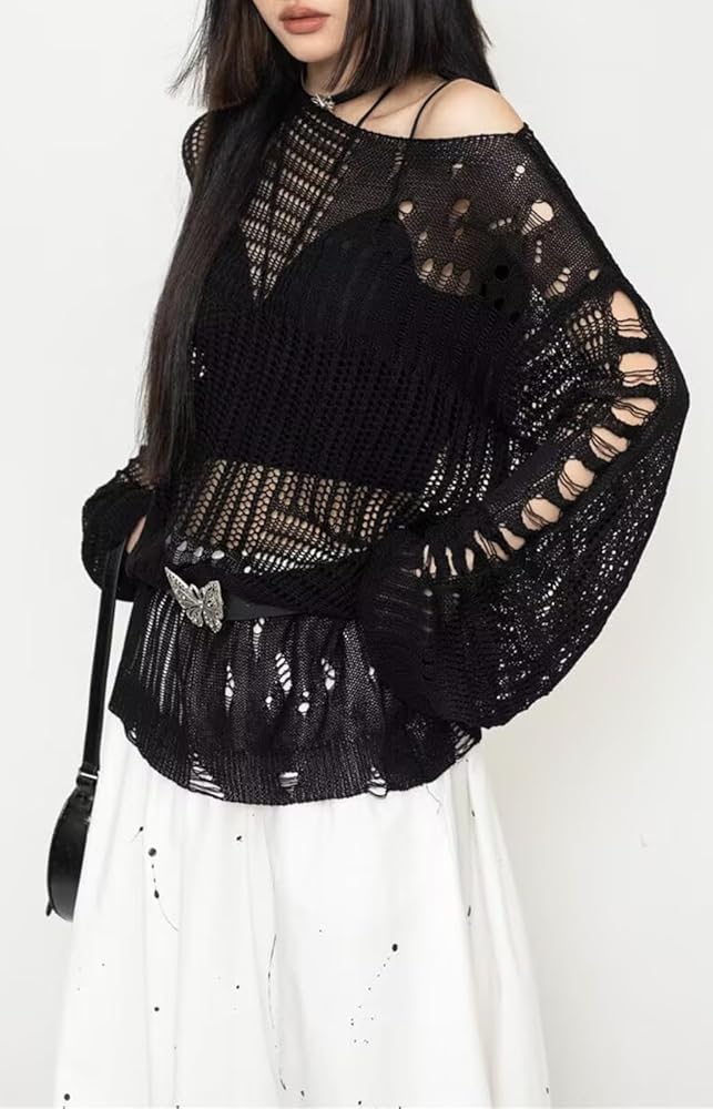 [Notice]: After opening the package, please shake the punk sweater so that it won't wrinkle. Goth ripped sweaters perfect for Gothic, Punk, Halloween, Cosplay, Party, Christmas, Casual, or daily wear.
