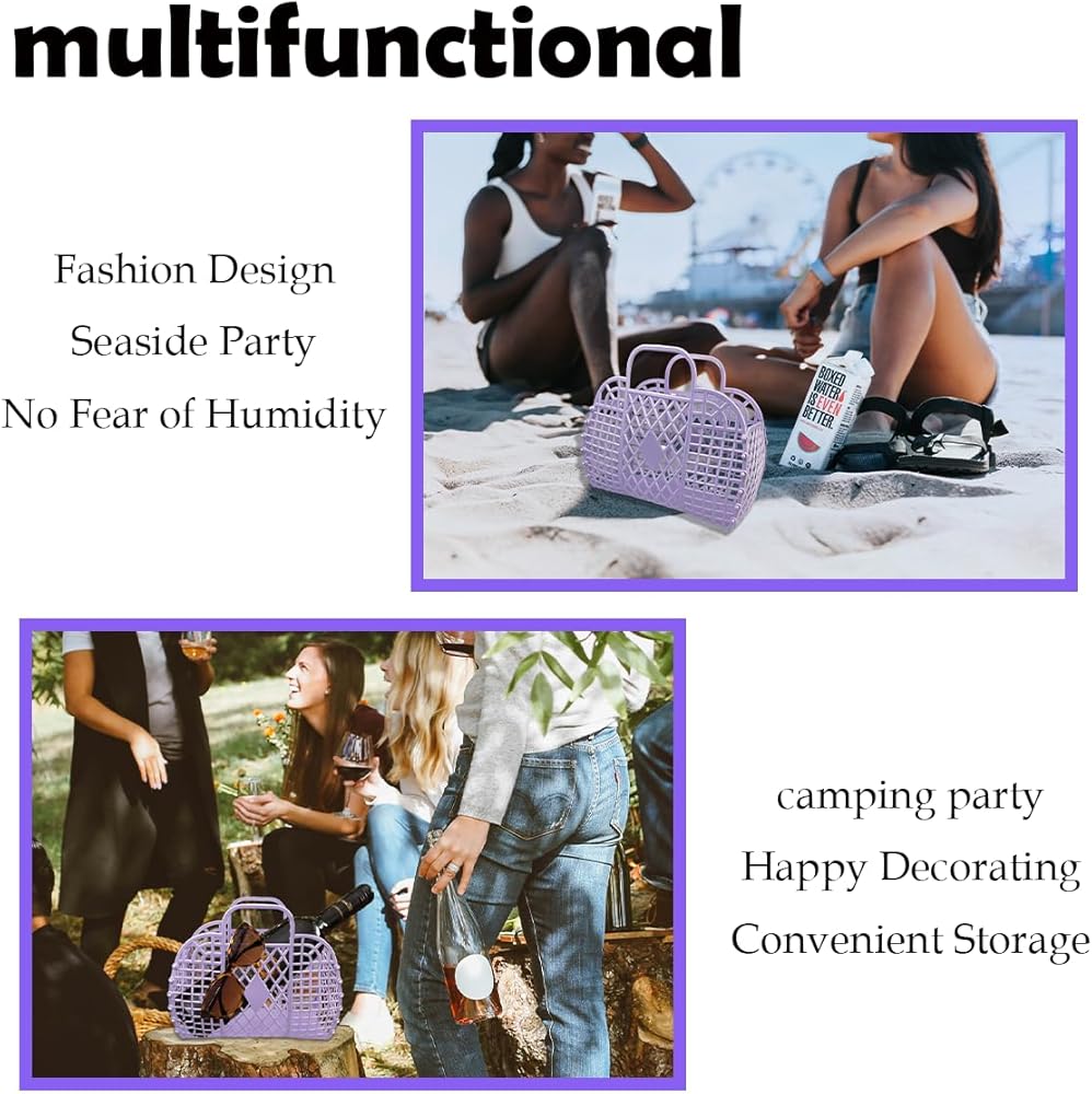 Application Scene: The jelly purse can be used as an organizer basket, shopping handbag, beach bags, etc. It can also be used for parties and camping. It can be used to organize things better also can be used to match your own dress, look more charming. organize things better also can be used to match your own dress, look more charming.