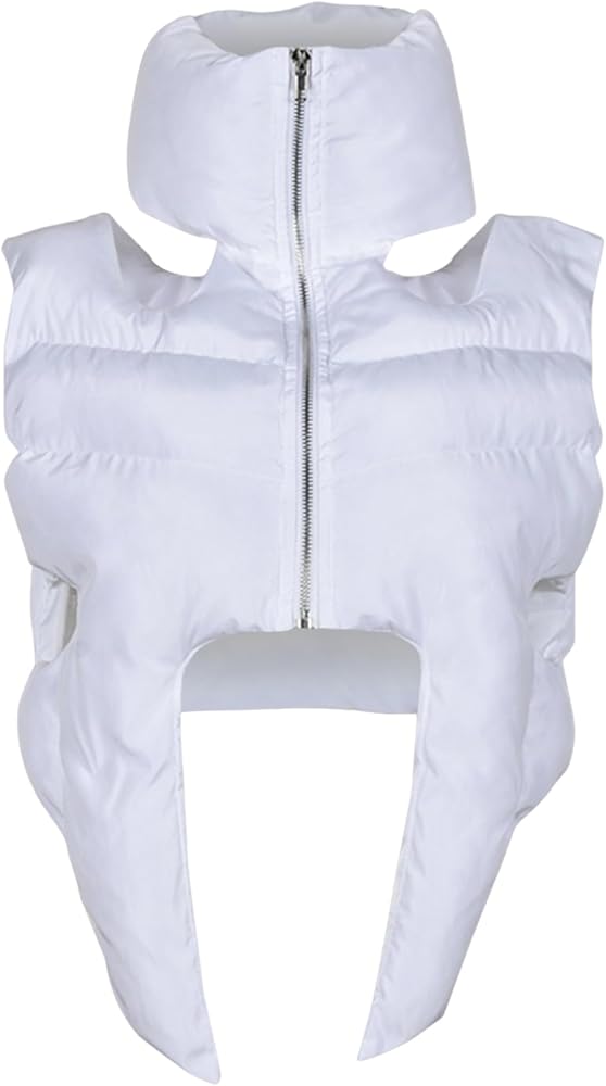 Features: Women cropped puffer vest, Full zip up, Stand-up collar,Hollow out design, Sleeveless, Asymmetrical hem, Y2K Styles, Relaxed fit, Warm and comfortable, leisure, fashion wear off simple,give you chic and stylish look. Down vest women/Puffer vest women/Going out tops/Cropped puffer jacket/Fall outfits for women/fall jackets for women 2023/Womens jackets lightweight/Zip up jacket/Womens black vest/Womens vests lightweight/Womens winter crop vest