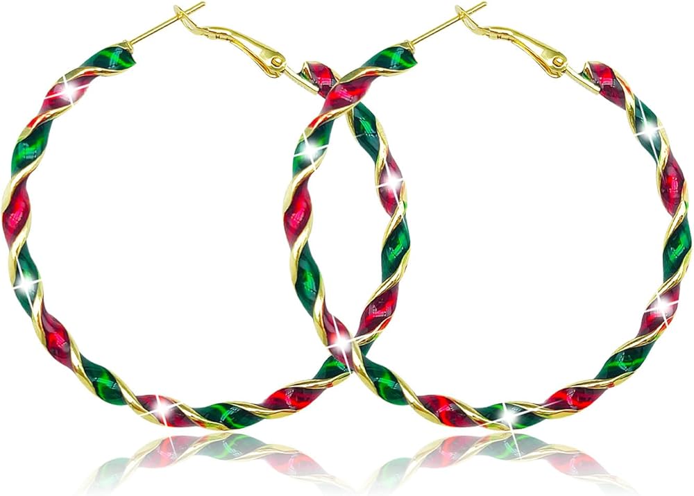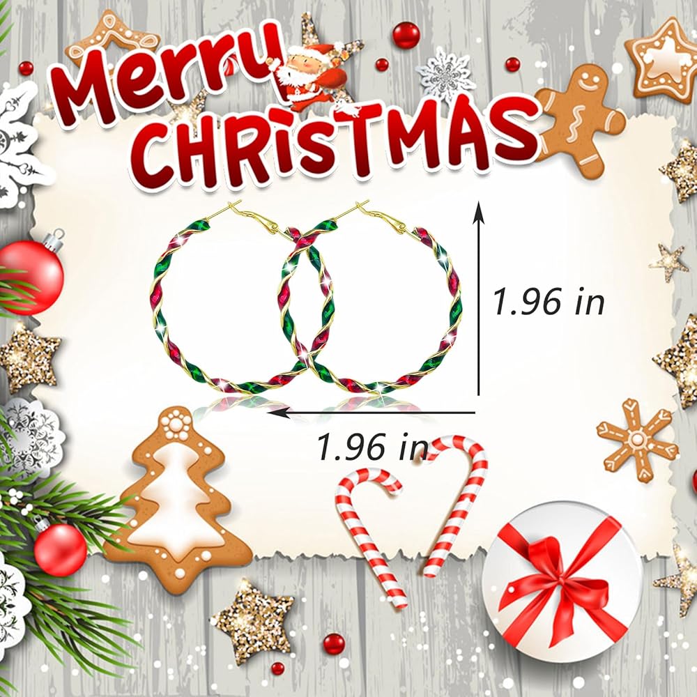 Christmas Earrings for Women Christmas Ornament Wreath Twist Hoop Earrings Christmas Red Green Colorful Huggie Hoops Earrings Christmas Earrings