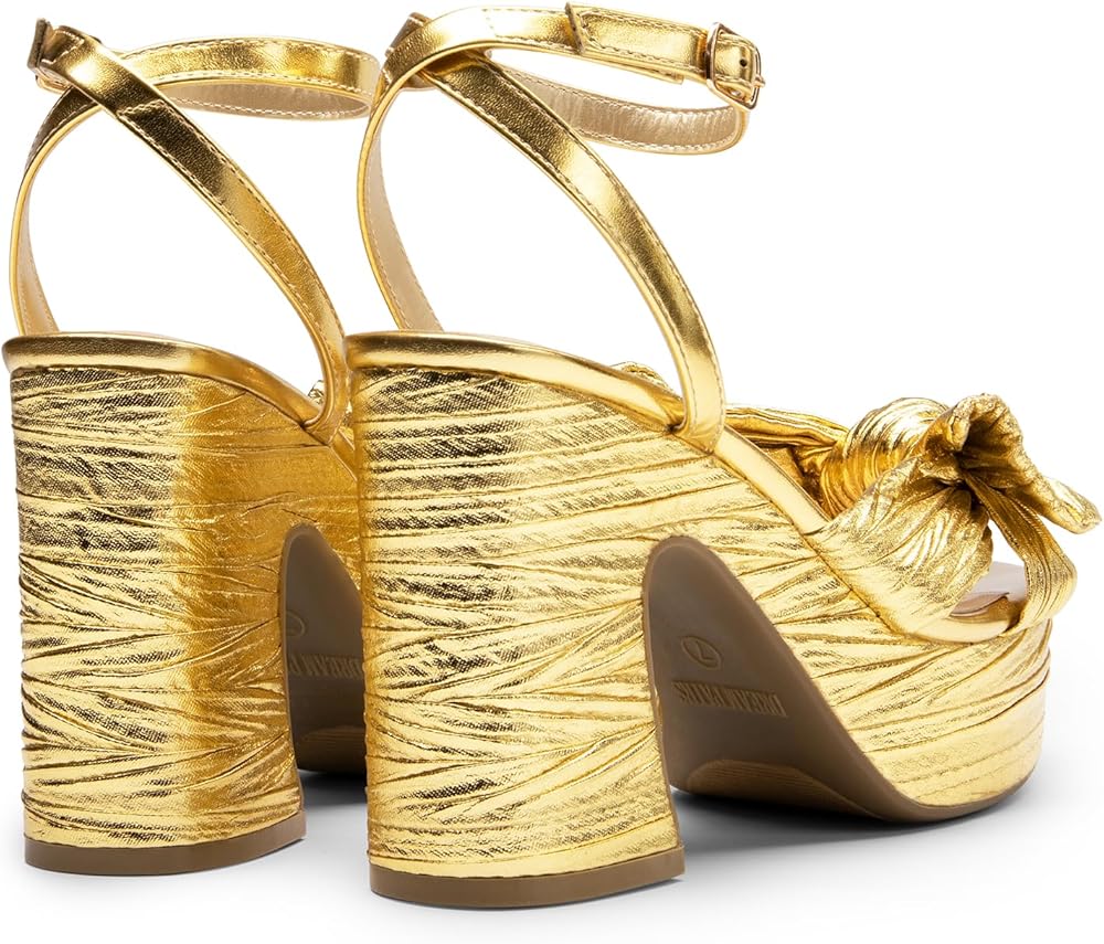 Elegant Design: These heeled sandals are designed with an open-toe design and complemented with a bow embellishment, perfect for glamorous evening occasions.