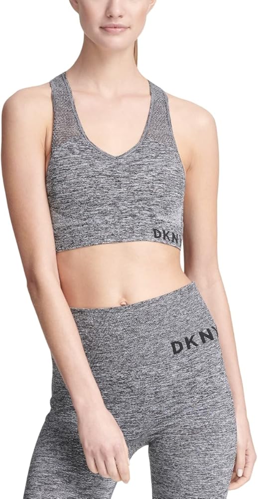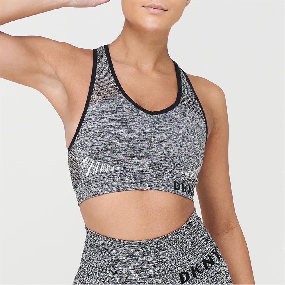 This DKNY womens Sport bra is a mesh back seamless removable cups