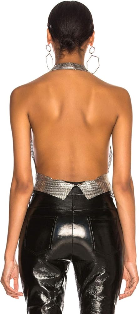 Silver sequins bra chain is suitable for women and girls to attend dance party,Evening Party,Banquet,important ceremony or friends' gathering and any occasions.Backless halter body chain will be a wonderful vacation gift,graduation gift,birthday gift,wedding anniversary gift,valentine's day gift,mother's day gift,halloween,christmas gift.
