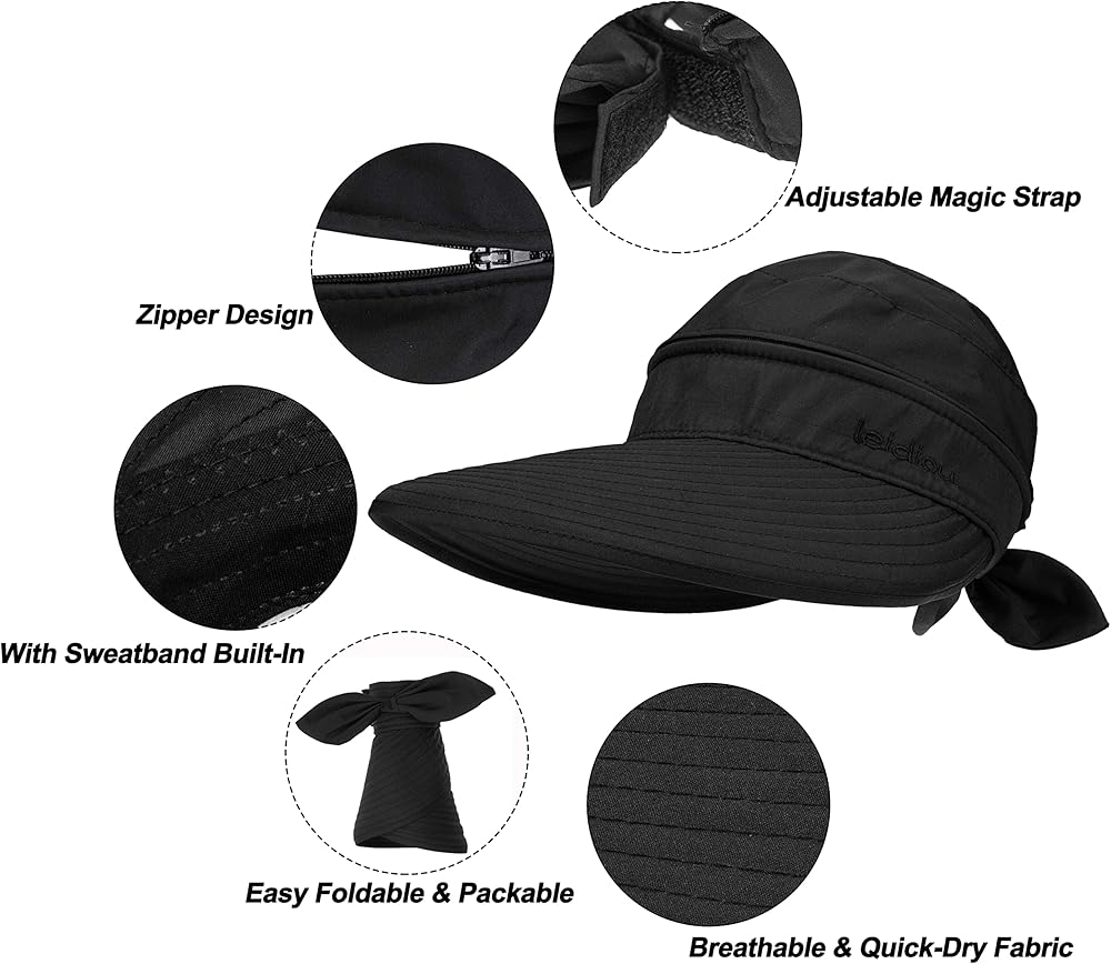 Foldable and Packable Beach Hat: This sun visor hat is foldable & packable while still maintaining its shape, save lost of space, it easy to store anywhere & carried in your bag on-the-go for
