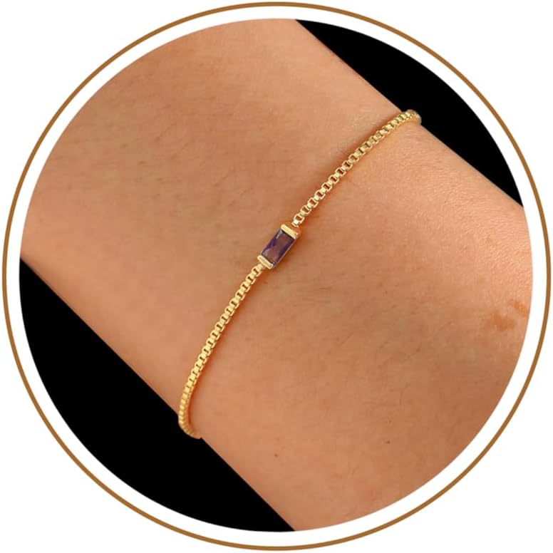 Stunning Baguette Birthstone Bracelets: Elevate any outfit with our dainty birthstone bracelet adorned with sparkling baguette zircon stones. The perfect accessory to showcase your sophisticated and stylish side.