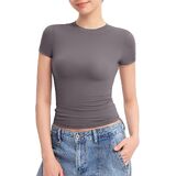 Timeless Design: Discover the charm of our short sleeve t shirts -a classic Y2K-inspired piece. With a round neckline, slim fit, and standard length, it's effortlessly versatile. Stack it at the waist for trendy crop tops. Embrace the classics with a modern twist!