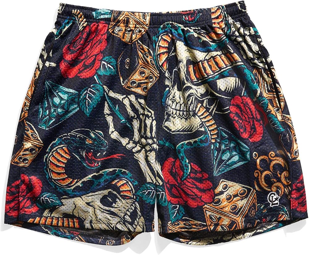 - الثعابين والجماجم والنرد. يتميز هذا الشورت الكلاسيكي من Chalk Line Retro بطباعة جديدة وعلامة CL التجارية على الركبة اليسرى.