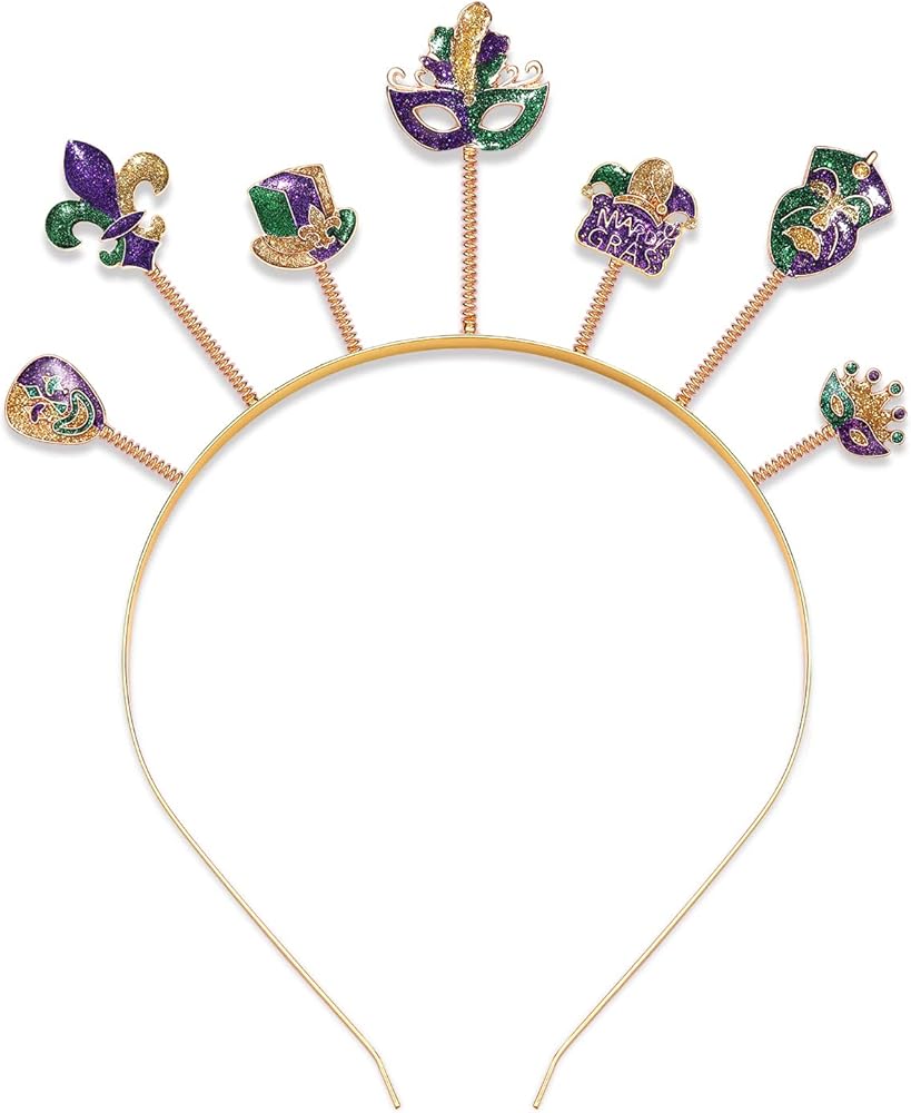 Dress up for your favorite parade with this sparky Fat tuesday glitter hairband!it made of high quality alloy metal,glitter materials,Laed free,Nickel free,Sturable and comfortable to all day wear.Size:about 7.0 x 4.6 inch,Our take on the most coveted accessory all year! Fits most heads- great for kids and adults!
