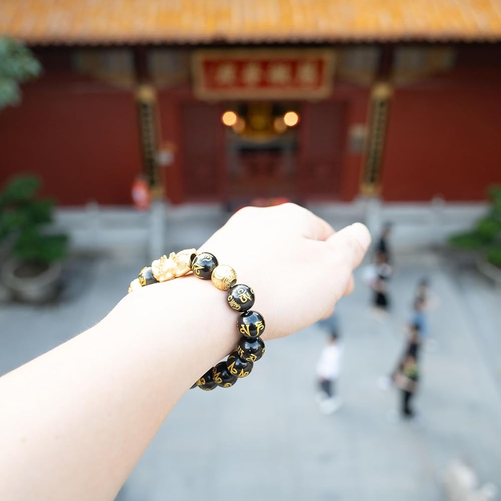 الحرفية: سوار سبج بيكسيو مصنوع يدويًا بعناية على يد حرفيين محترفين. تستخدم الخرز الذهبي لسوار التنين والبيكسيو الذهبي عملية صنفرة ذهبية عيار 24 قيراط وطلاء عالي الضغط ودرجة حرارة عالية، ولا يبهت أبدًا، وأحجار رونية رائعة منحوتة، ومتوافقة مع تعويذة سبج مانترا المذهبة المكونة من ستة مقاطع، ويجمع السوار بين الحرفية الهزيلة والجودة الممتازة.