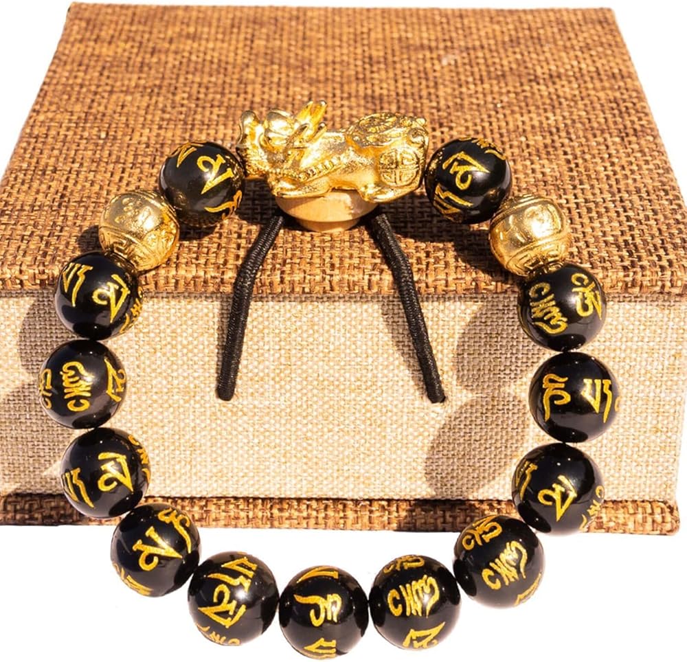 سوار عالي الجودة: سوار ثروة سبج فنغ شوي هذا مصنوع من بيكسيو مطلي بالذهب عيار 24 قيراط، و3 خرزات مطلية بالذهب، و12 حجر سبج مانترا مذهّب بستة مقاطع. سوار Lucky يناسب محيط المعصم: 5.9~8.2 بوصة، مناسب لمعظم الرجال والنساء. حجر السج هو حجر كريم طبيعي يتكون من التبريد السريع للمعادن المنبعثة من البراكين ذات درجة الحرارة العالية. يعتبر حجر السج الأسود النقي أكثر ندرة ويمكنه تخفيف التوتر العقلي.