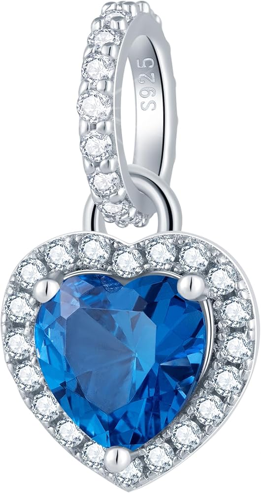 ✿Fine and Detailed Design✿ The clear night sky or a feeling of serenity? Who you are and what you love, all captured in color. Wear as a reminder of someone you love or assign your own meaning with this heart birthstone dangle charm. Hand-finished in sterling silver, this piece features an elevated heart-shaped mazarine blue stone at the center outlined by a row of clear stones on one side and month engraving detail on the other add a dazzling twist to define and express your style!