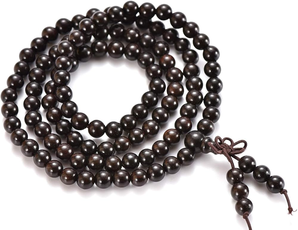 【Natural Wood Beads & Elastic Cord】All beads are made out of natural wood, carefully polished. It feels smooth and comfortable to wear. The 108 beads are threaded onto a durable elastic cord for safety and secure wearing.