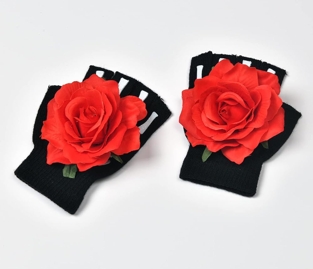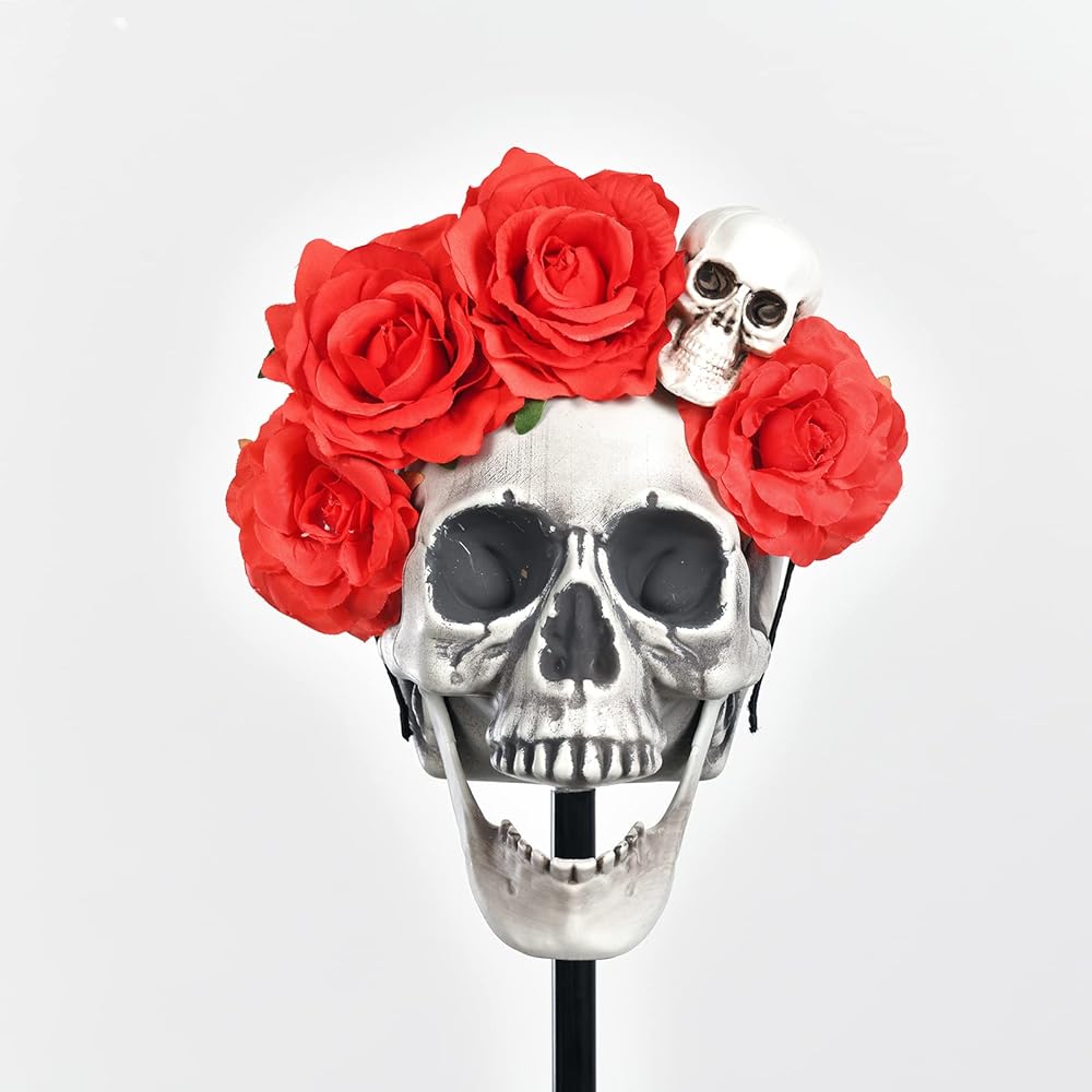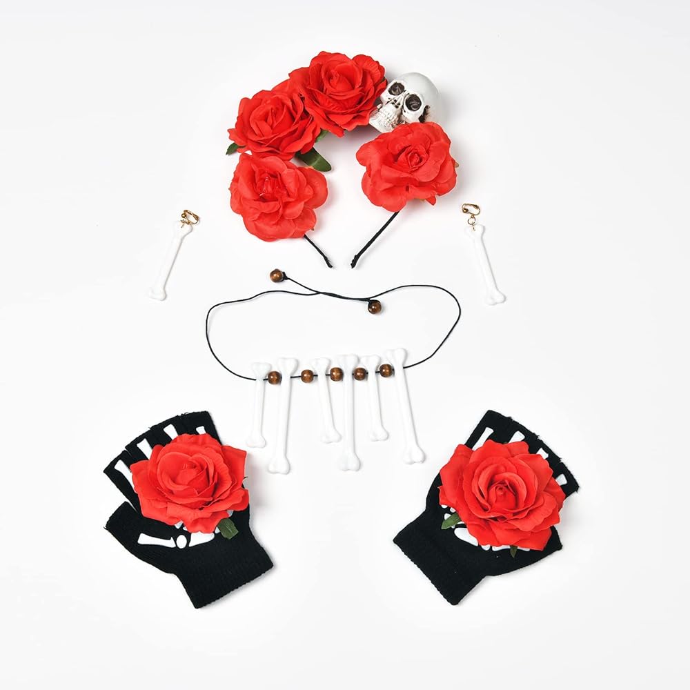 DreamLily Day of the dead Headpiece Red Rose skull Flower Crown Costume NC24 (Red 5 set)