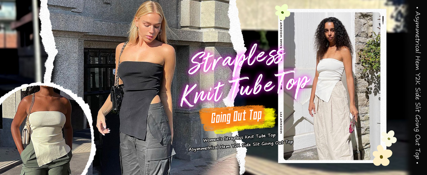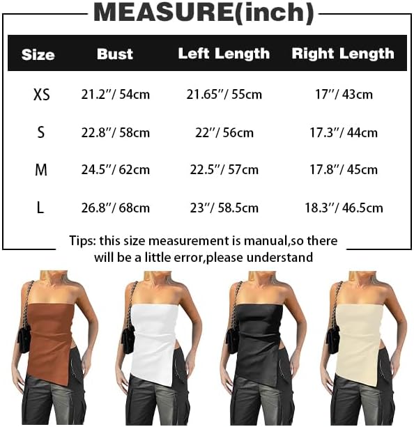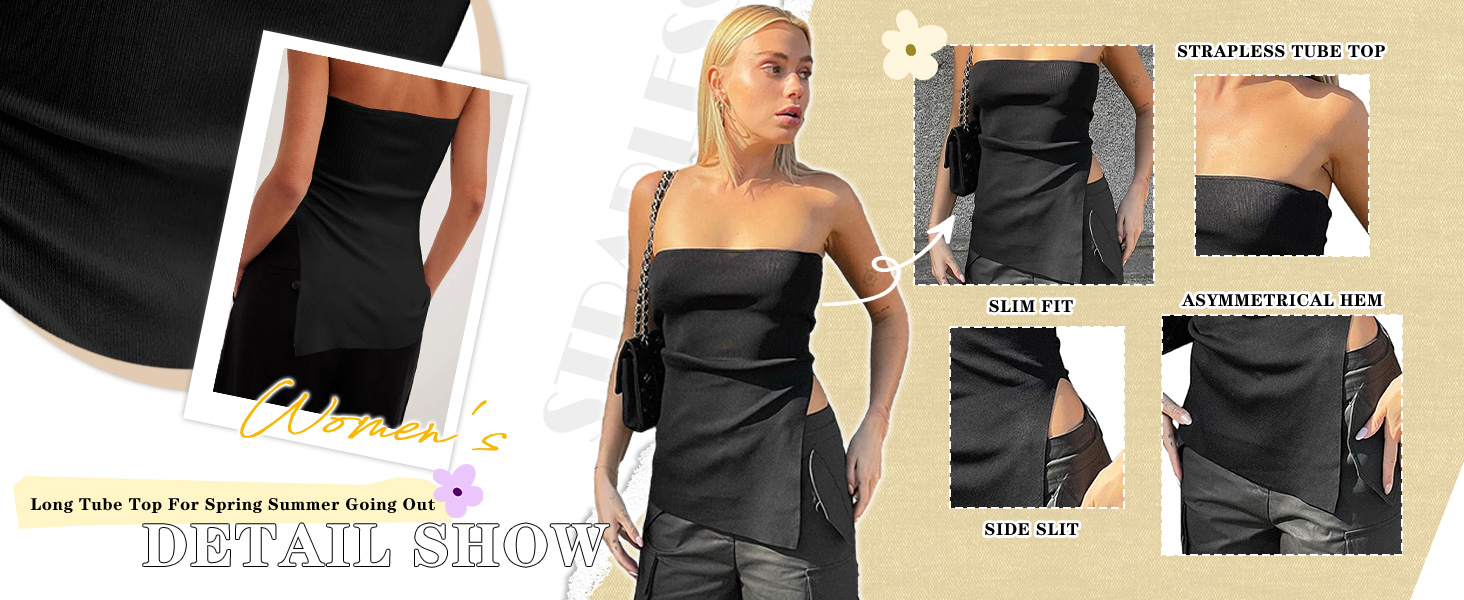 FEATURE: Side slit chic design, strapless bandeau top, asymmetrical hem tube top vest, y2k tank top for women, solid sleeveless bandeau, sexy going out tank bustier.