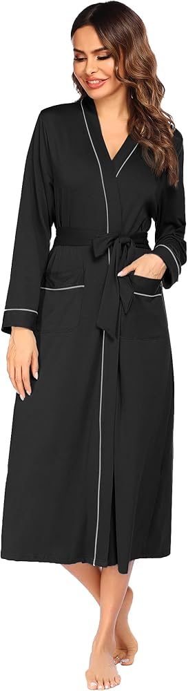 【Fabric】 Soft knit robe, stretchy, durable and easy on the skin. Better fit and touch. Fabric is warm in winter and cool in summer. Great to wear in all seasons.