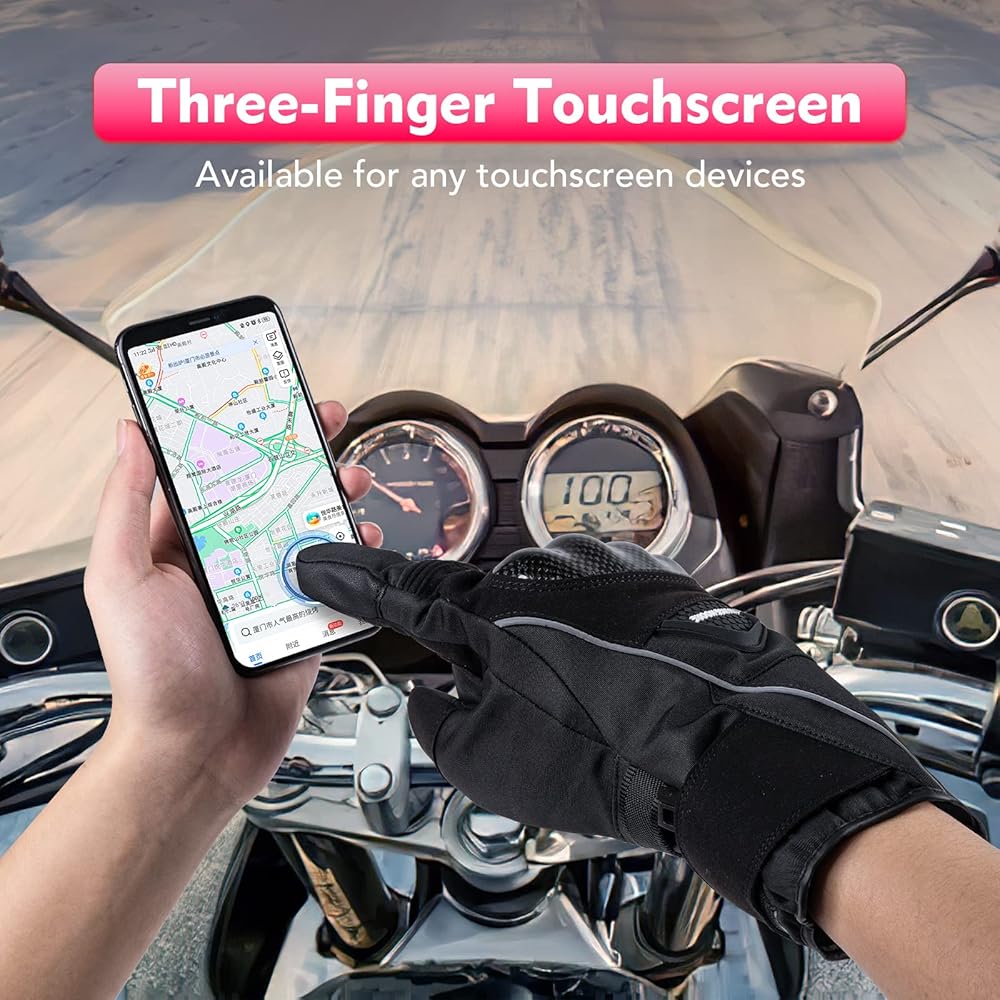 🧤 Sensitive Touchscreen. CHANGE MOORE insulated motorcycle gloves are warm but still comfortable and not so bulky that finger or hand dexterity are compromised. Touchscreen functions on index finger, middle finger and thumb ensure you text or do whatever on touchscreen devices precisely without taking off the gloves in cold weather.