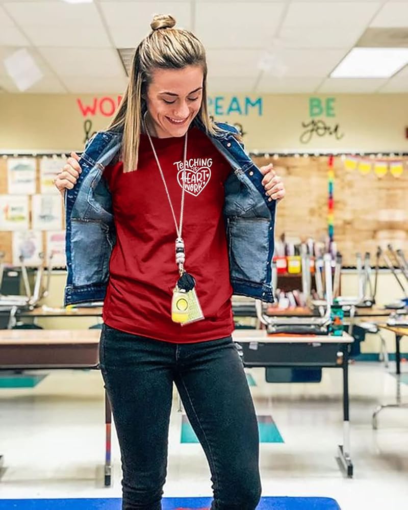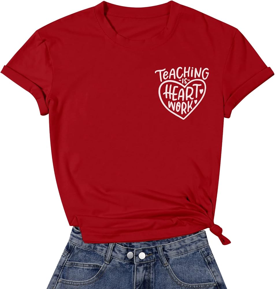 FEATURES : Cute love heart graphic and teaching is heart work letter print, casual short sleeve , classical crewneck design , make it fashion and simple. Unique and funny design , and makes a great gift for your teacher.